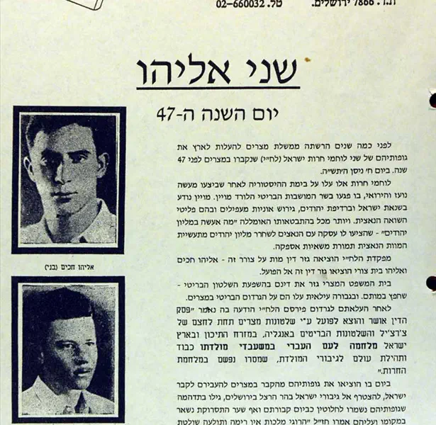 ביום חמישי הקרוב נקיים אזכרה לשני גיבורי הלח"י אליהו חכים ואליהו בית-צורי שהועלו לגרדום ונרצחו ע"י האויב הבריטי ששלט בארצנו, בעקבות מלחמתם למען חירות ישראל וסילוק השלטון הזר, והתנקשותם בחייו של הלורד מוין.