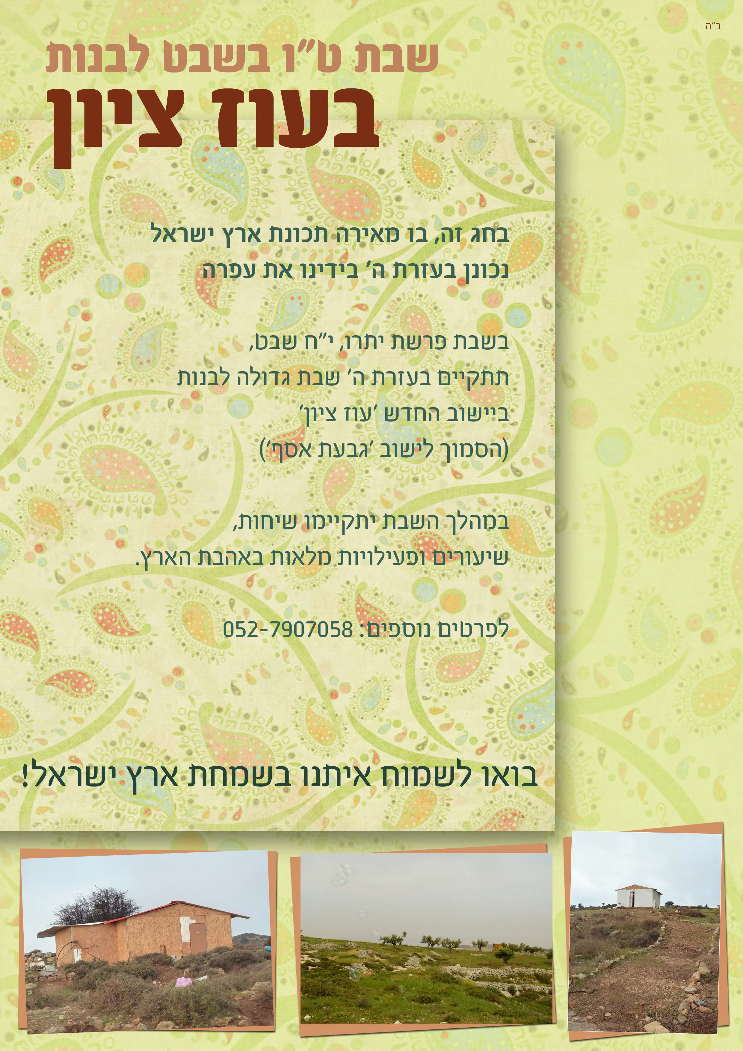כולן מוזמנות לשמוח את שמחת ארץ ישראל בחגה המיוחד, במקום מיוחד ובאווירה מרוממת של קדושת א"י!!