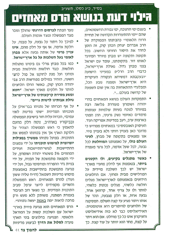 ובאמת חב"ד עושה המון בשביל א"י- כמובן בהשפעת הרבי.