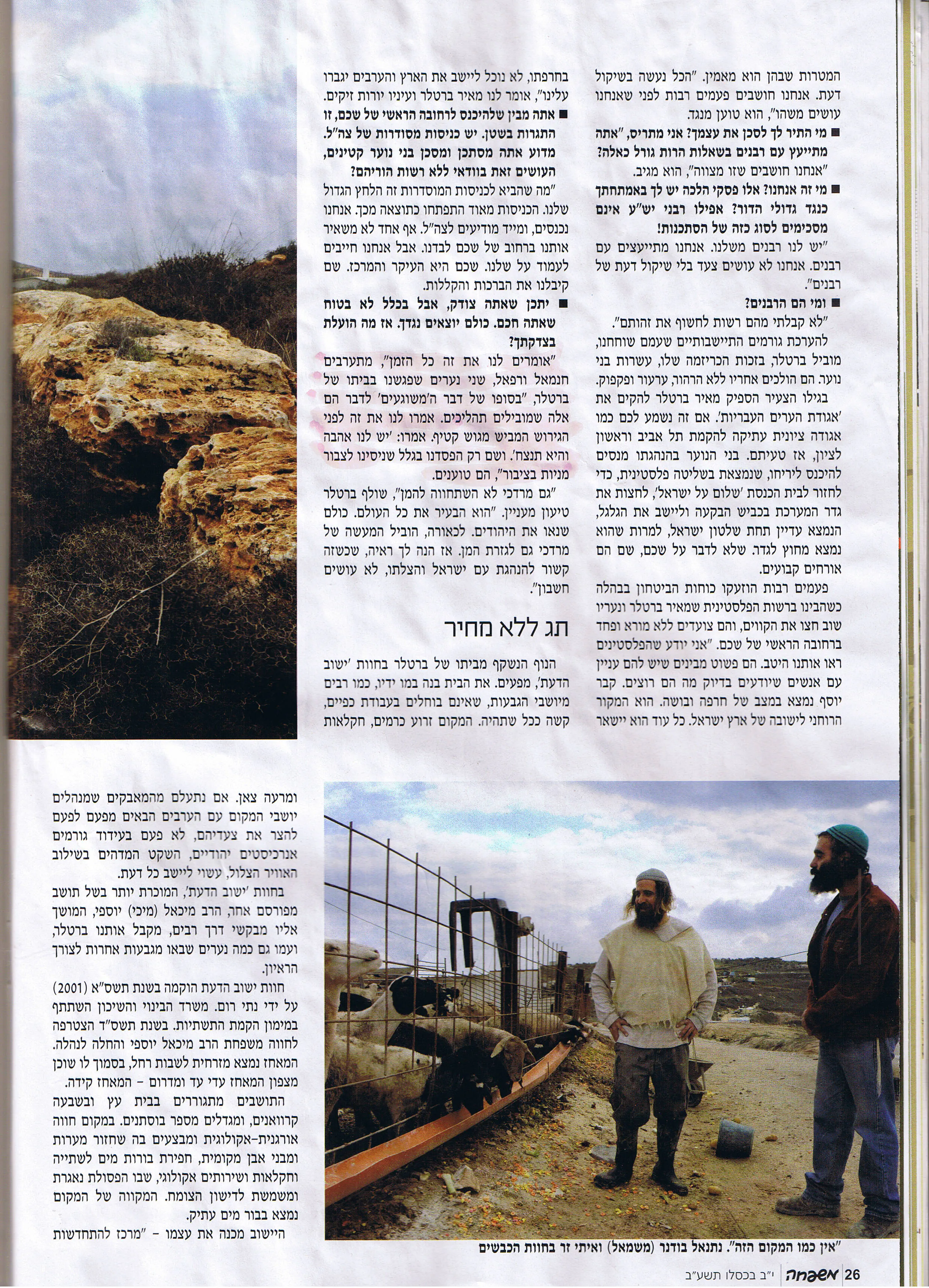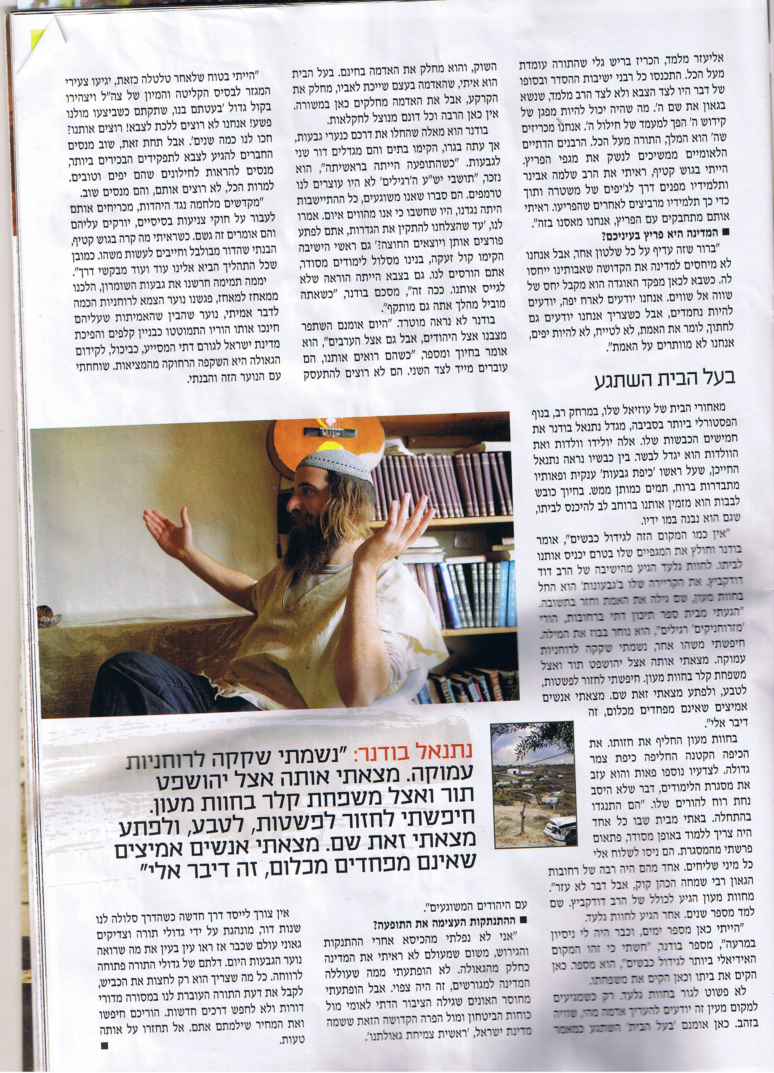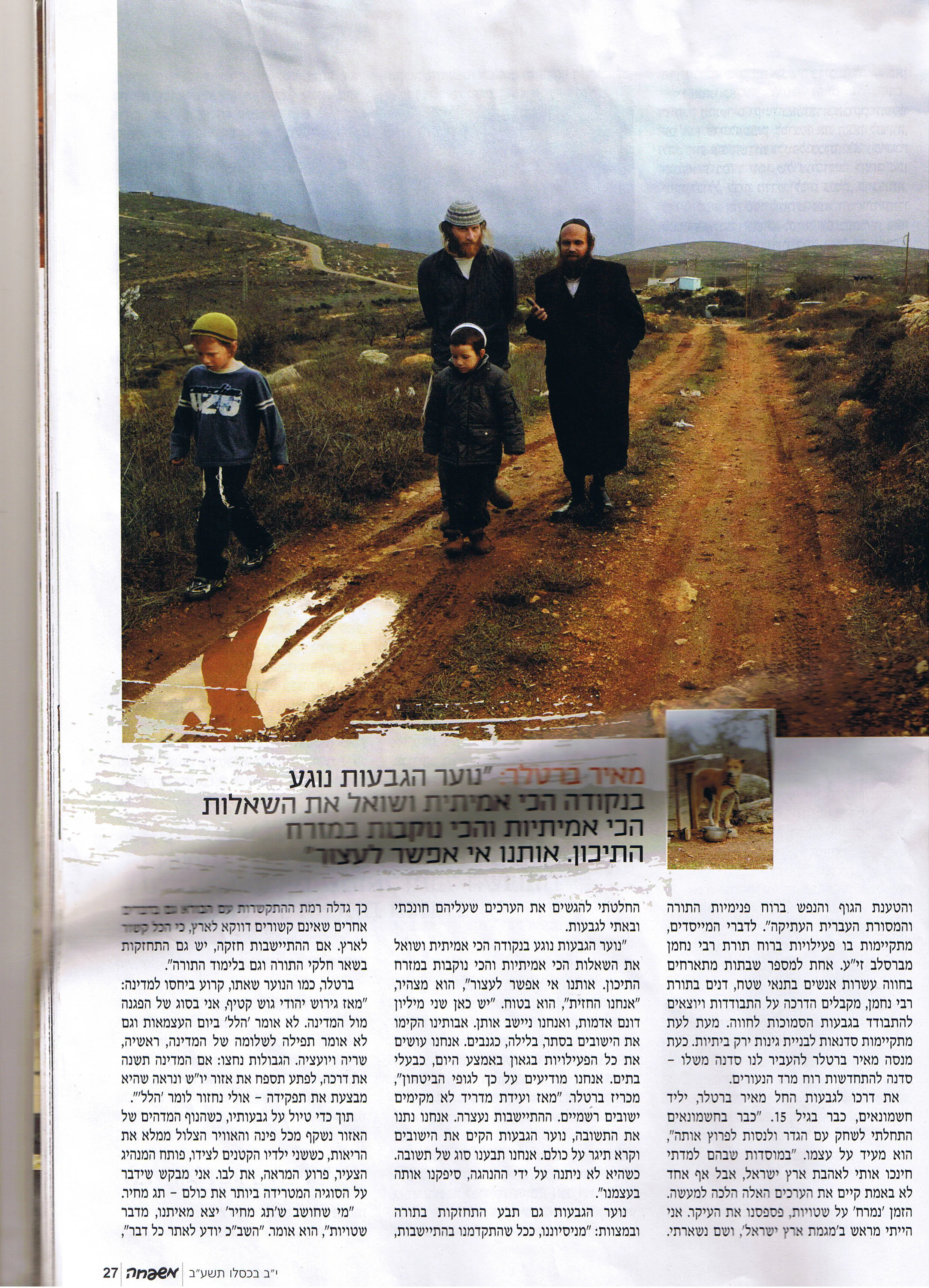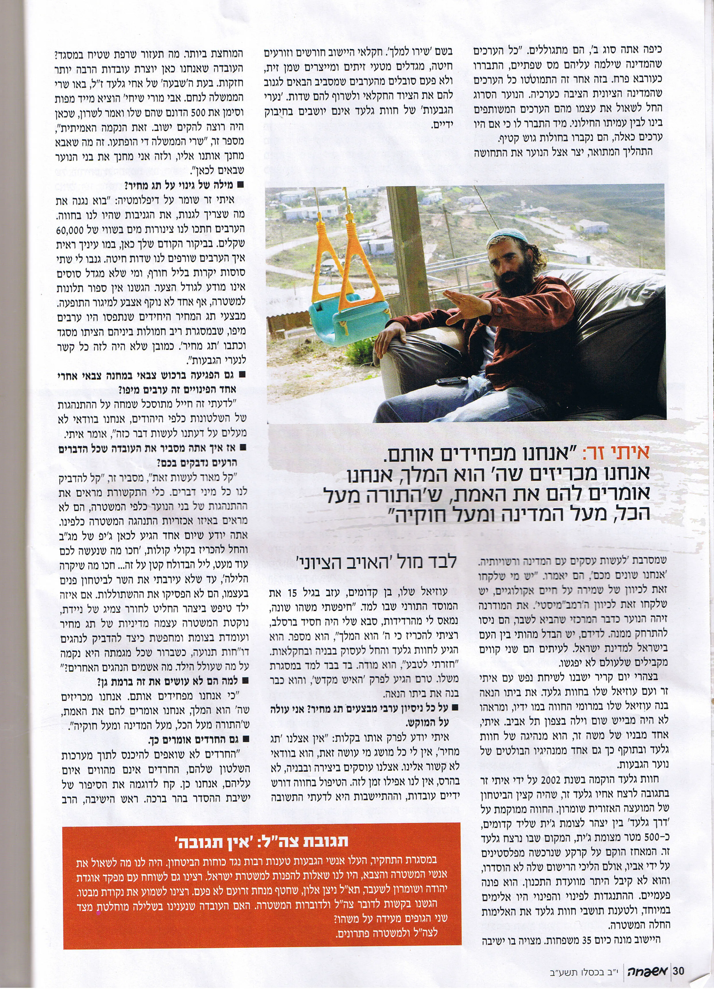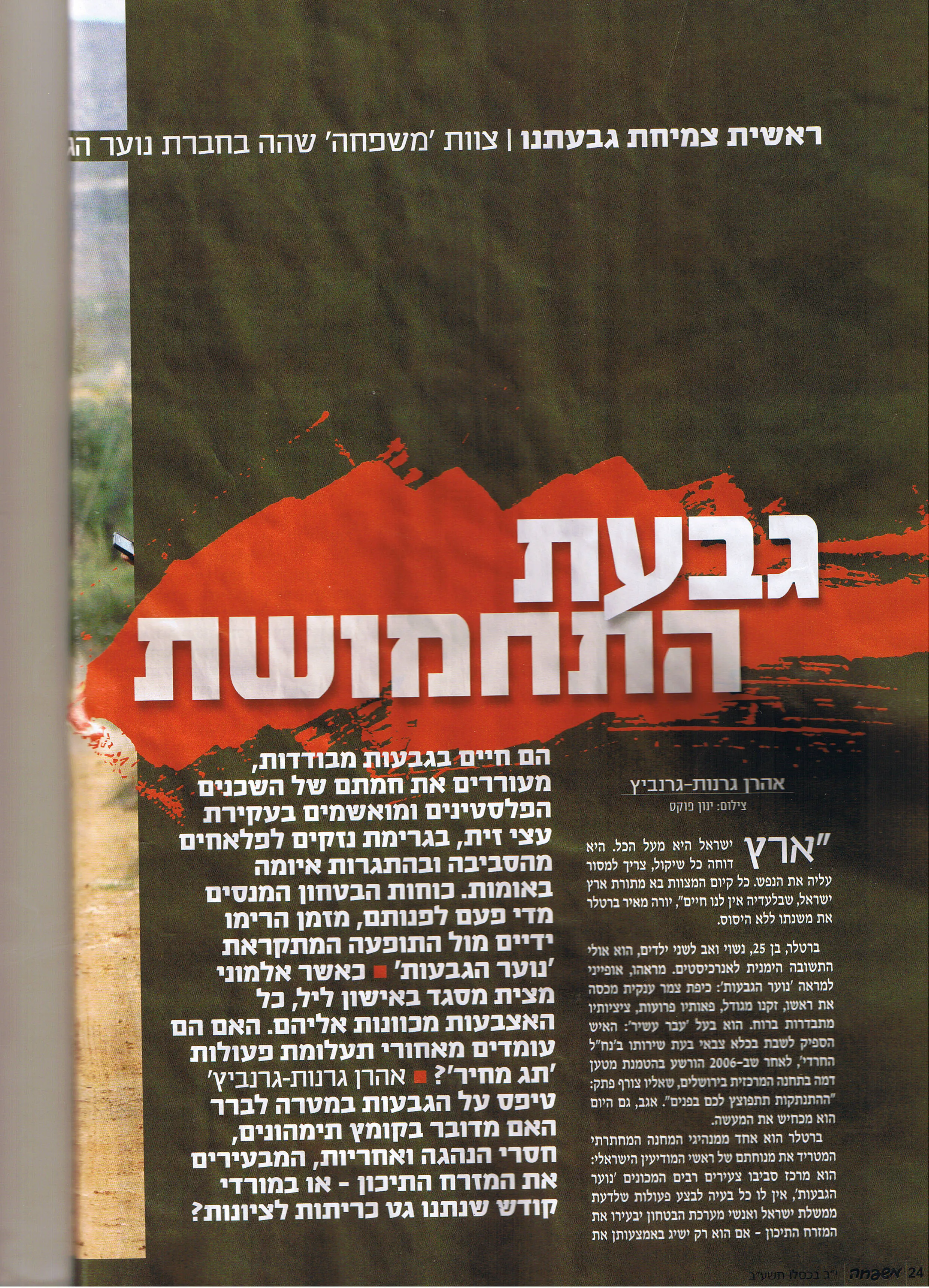 אולי זה הכללה, אבל אני רואה את נעריי הגבעות עם פאות ארוכות, עם כיפות גדולות, לא מדברים עם בנות, ממש יראי שמיים (לא צינית!). אני חושבת שהמצוות חשובות לכם.. לא? אתם באמת חושבים שלהחזיק אדמה בארץ שלנו מצדיקה את הדרך בה זה נעשה? את הפגיעה והסיכון שזה גורם?