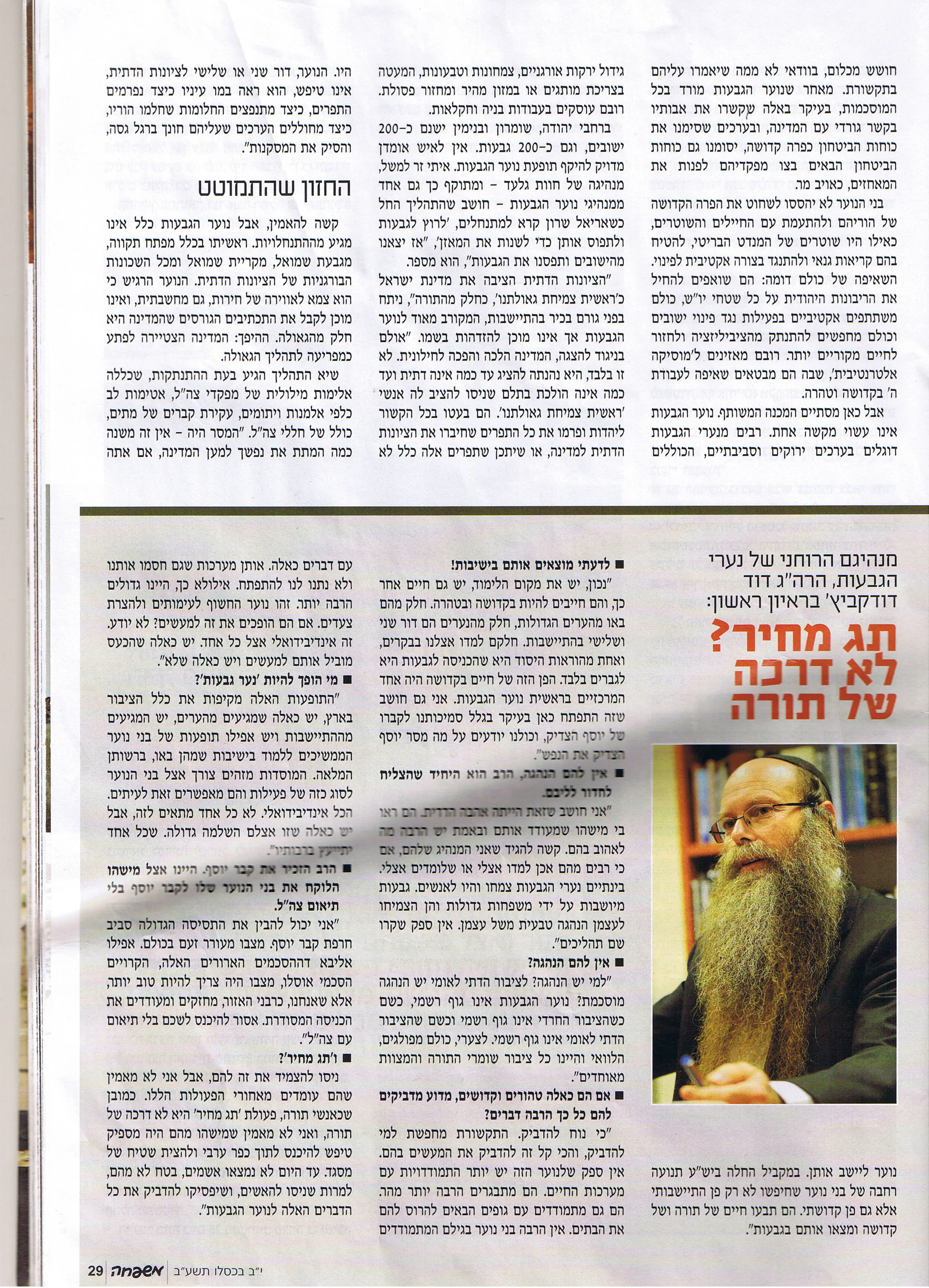 מסתובב יום שלם, רואה ופוגש אנשים ממרחב שהוא מעולם לא יכיר ומסקנתו הרדודה והיחידה היא ש'הנה, צדקנו, תפסיקו לעשות תטויות- בואו תהיו חרדים' מלמדת שהוא פשוט לא הבין כלום.