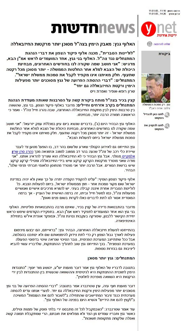 בשיחת הטלפון האחרונה אמרתי לך: אל תלך להיות בשר תותחים, אולמרט אומר שהמבצע הוא מנוף להתכנסות, תחזור הביתה, יש לך הזדמנות היסטורית לסרב כדי שהפוגרום של גוש קטיף לא יחזור בבית שלך, במכמש.