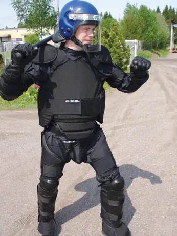 קשה להישאר אדיש למול ים של לובשי מדים שחורים, עטויי מגנים, חלקם רעולי פנים, ובעיקר מחומשים בנשק, סליחה, אמצעים לפיזור הפגנות, מכף רגל ועד ראש. בגוף עוברת תחושת צמרמורת. שרון, אסתר, ואני מתמקמות בשורה הראשונה מול כוחות הימ”מ, במרחק נגיעה מהשורה הראשונה של הכוחות. עוברת לי בראש עוד מחשבה נאיבית, שאם תהיה התלהטות, אולי יהיה משהו “מרגיע” בנוכחות שלי בחזית מול המשטרה. אבל בינתיים, בכל מקרה, שקט, ואנחנו עסוקות בעיקר בלקשקש, לעשן, לתקוע מבטים חזרה לימ”מניקים שספק מנסים לקרוא את הכיתוב על החולצות ספק תוקעים מבטים לא ראויים, ובלתהות האם השקט יישמר, האם העובדה שבשורה הראשונה של השוטרים ניצבים בעיקר קצינים היא סימן לרצון של המשטרה גם לשמור על רגיעה.