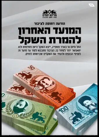 (ההדגשה לא במקור). מי כאן לא היה רוצה שטרות כאלו?אנונימי (פותח)השטרות האלו, כמו עוד תמונות ודברים אחרים, הוצגו בערוכה במכללת שנקר על המתנחלים, מטרת התערוכה היא להציג 'לא פחות' את המתנחלים כנאצים {לפחות לעניות דעתי, לאחר שהתבוננתי תמונות} בין התמונות שהוצגו שם, הוצגו גם השטרות האלו שכביכול ישמשו את ציבור המתנחלים שישלוט כאן מתי שהוא, על המדינה. השטרות דווקא לא כל כך רעים