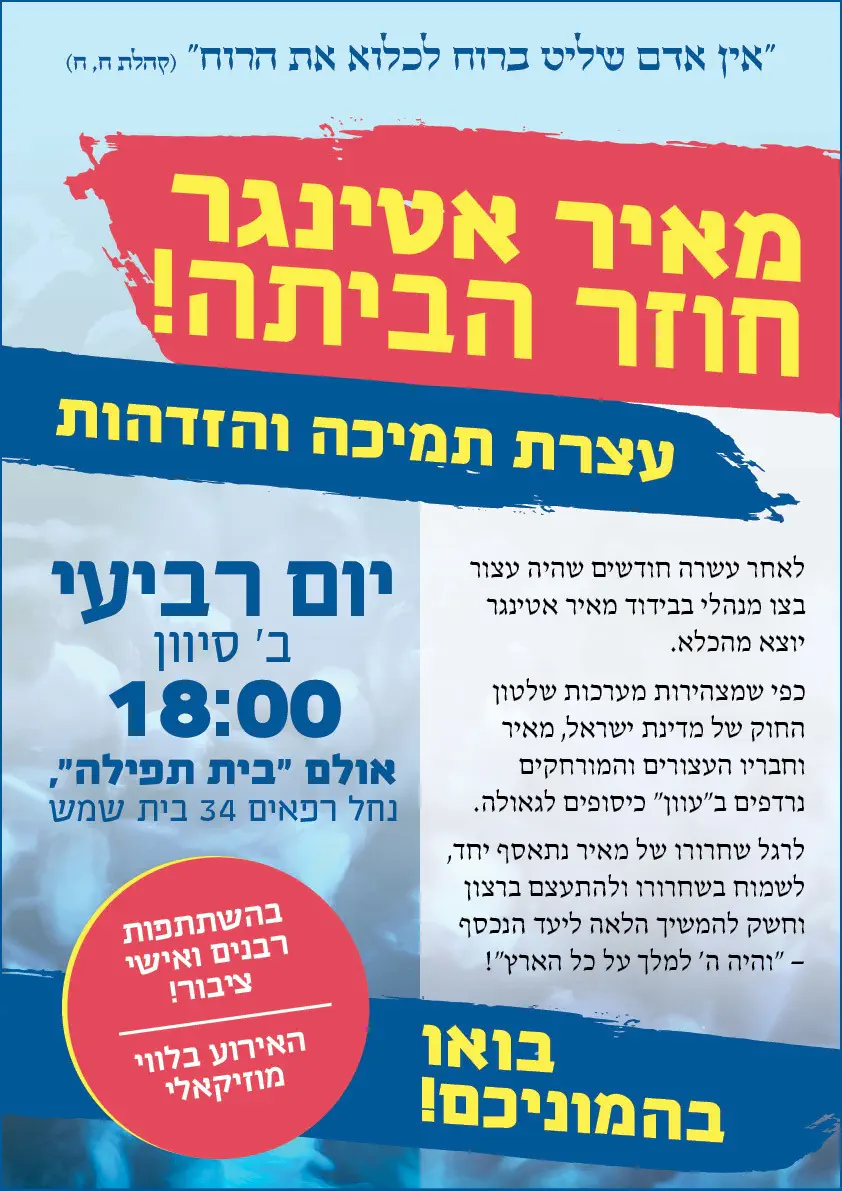 ביום רביעי מאיר אטינגר קיבל הרחקה מיו"ש לשנה, ומירושלים ויד-בנימין לחצי שנה.