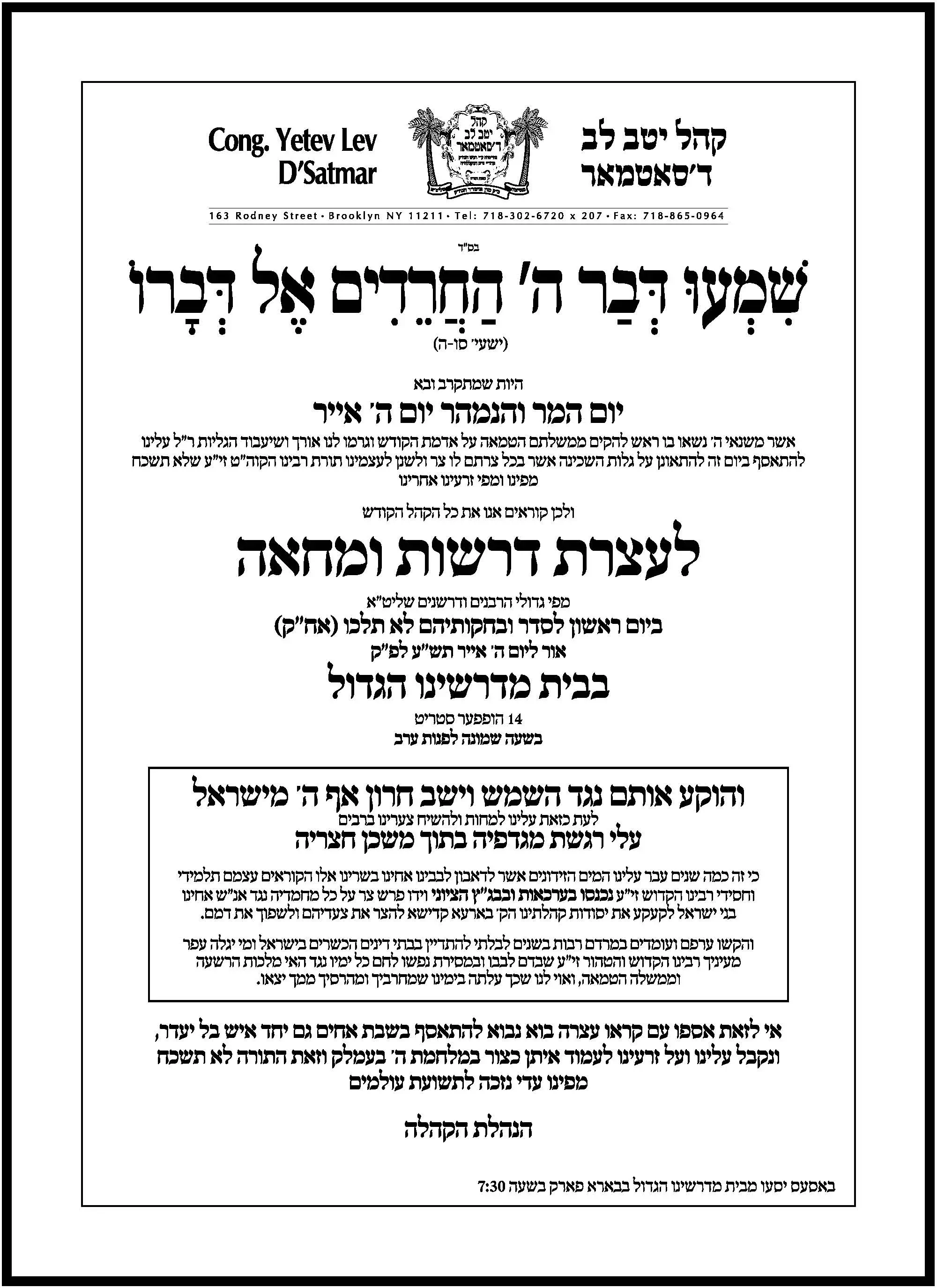האדמו"ר מבוסטון שליט"א:אין לומר תחנון ביום העגדי-10