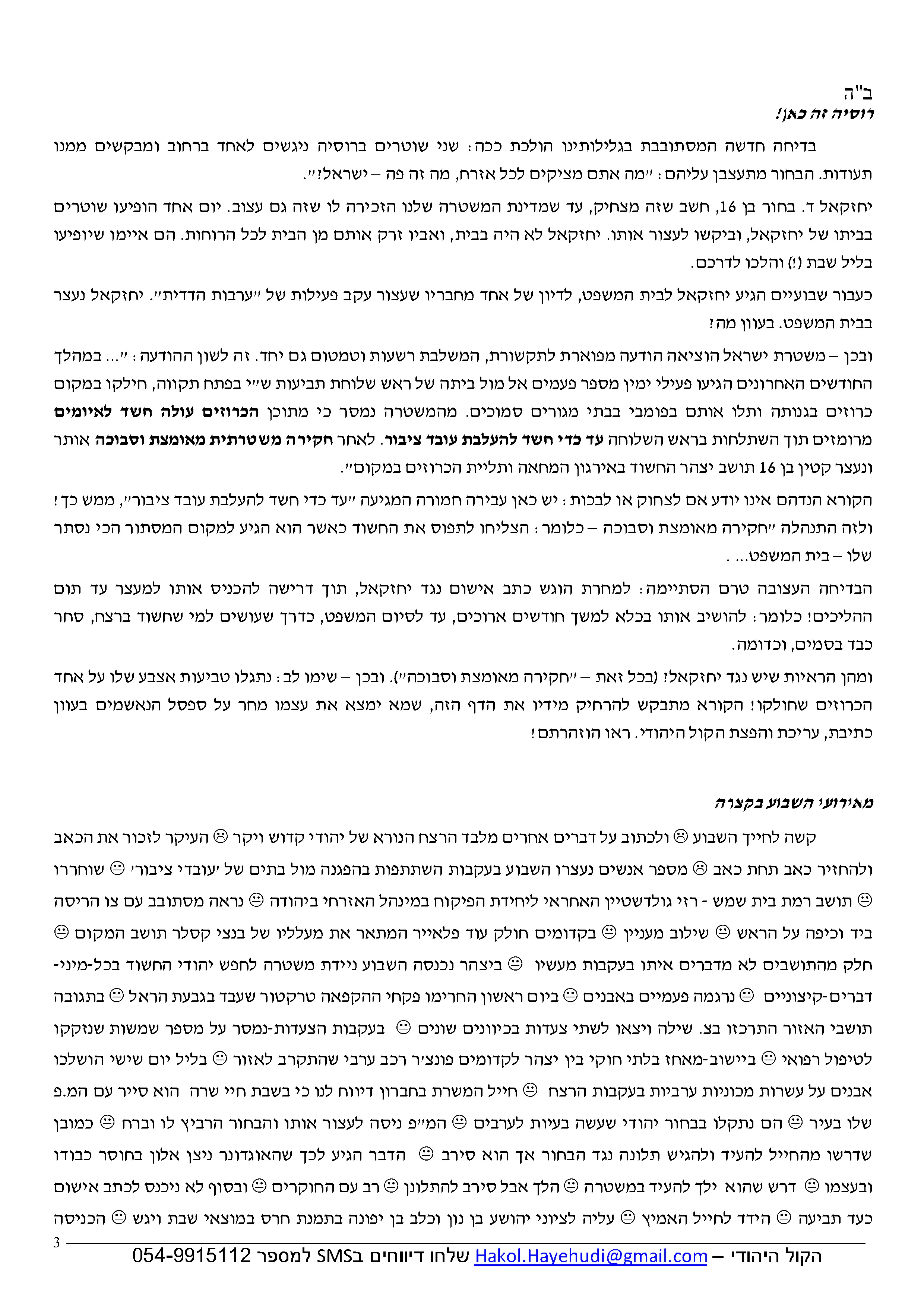 משהו יודע מדוע לא נשלח השבוע ידיעוו הקול היהודי?קשקשן