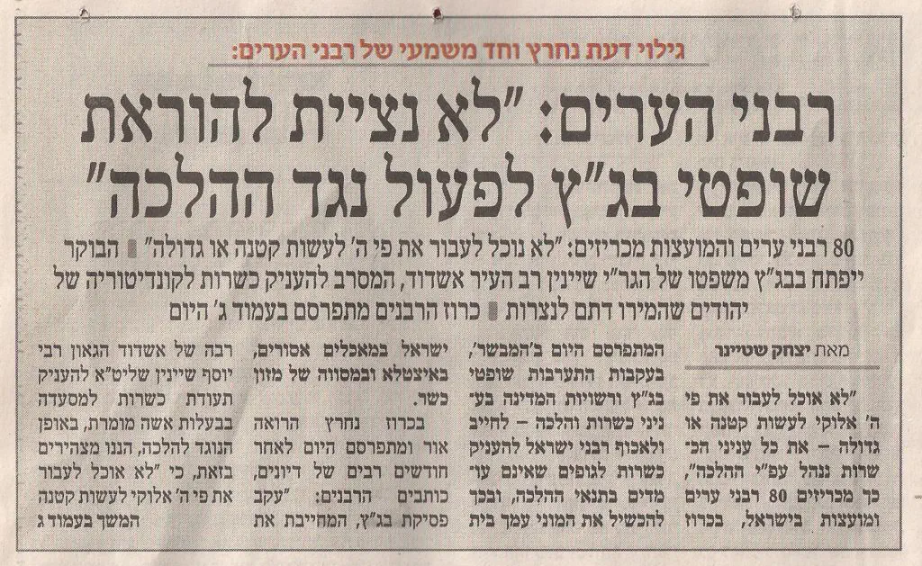כל אדם מבין שהשאלה העומדת על הפרק היום בויכוח עם ישיבות ההסדר איננה שאלת ההפגנות. השאלה האמיתית כפי שכל הכתבים טורחים להדגיש היא שאלת הריבון. האם המדינה - נתניהו – ברק הם הריבון , או בורא עולם. ממש כמו בזמן ששלטו פה המתיונים בימי בית שני, שהיה חשוב להם מאוד לכפות את תהליך ההתיונות, על כל העם. כך גם חשוב היום לאליטה השלטת לכפות את התובנה שמרות המדינה – האליטה השלטת, קודמת לנאמנות לבורא עולם. זו השאלה שהונחה לפתחם של רבני איגוד ישיבות ההסדר.