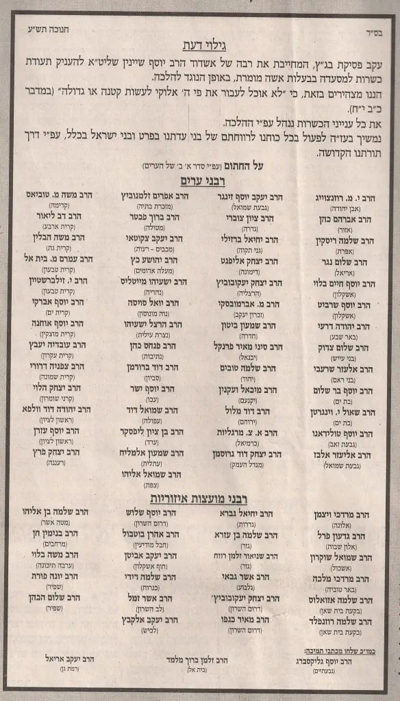 דובר איגוד ישיבות ההסדר, הרב דוד סתיו, פירט בתום כינוס ראשי הישיבות את נוסח ההחלטה שהתקבלה ע"י רבני הישיבות: