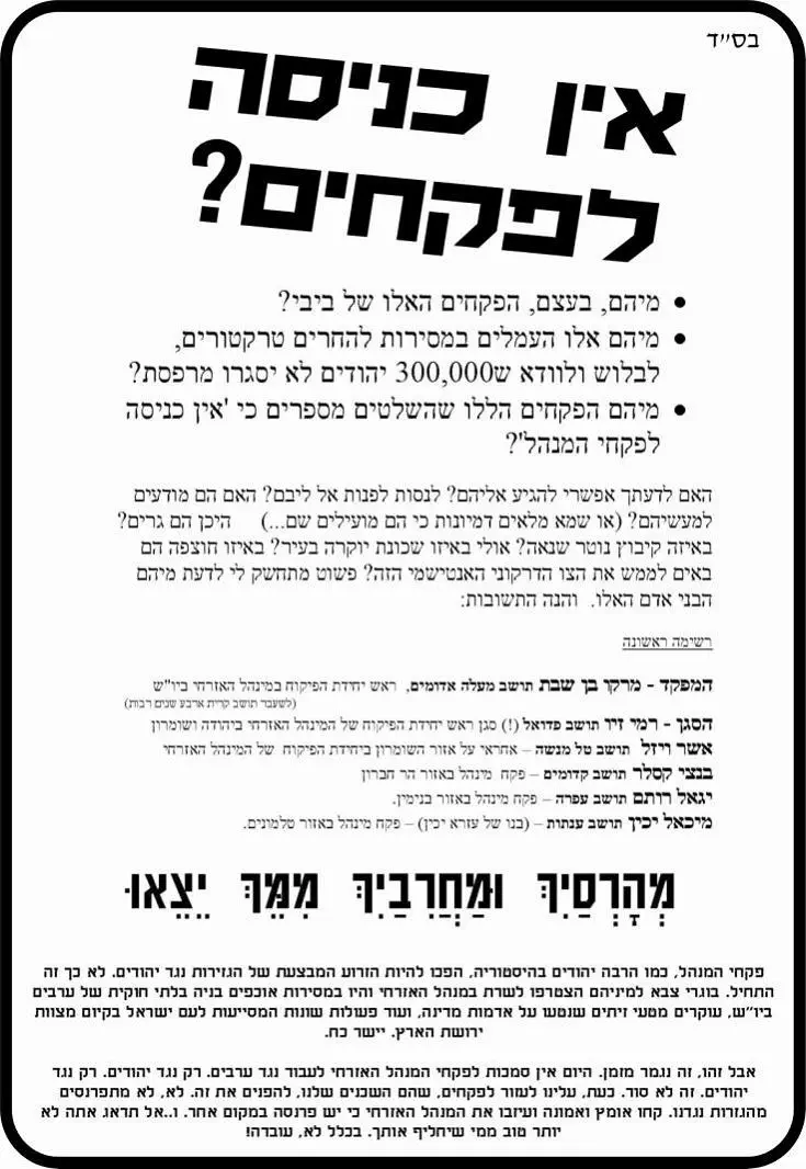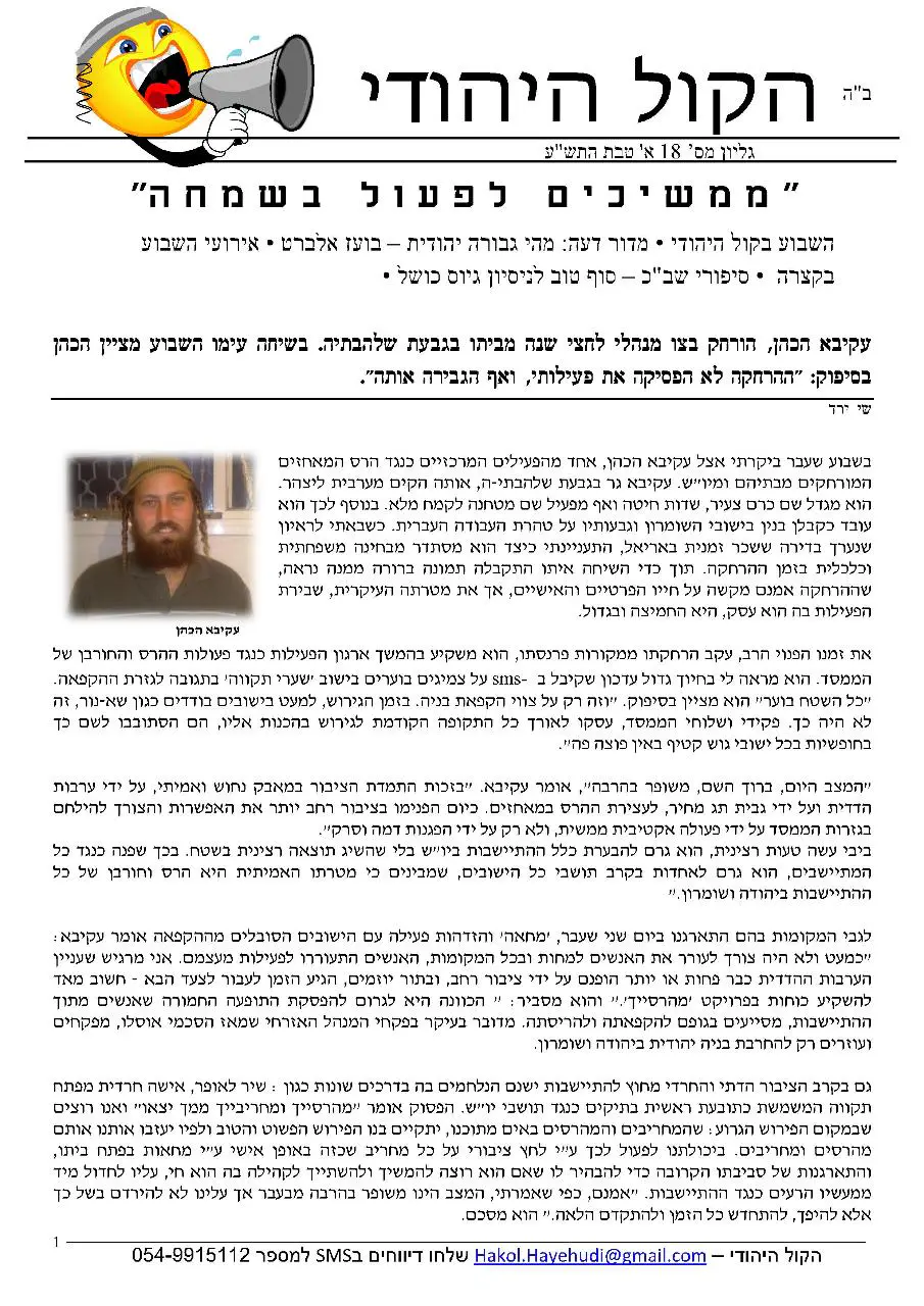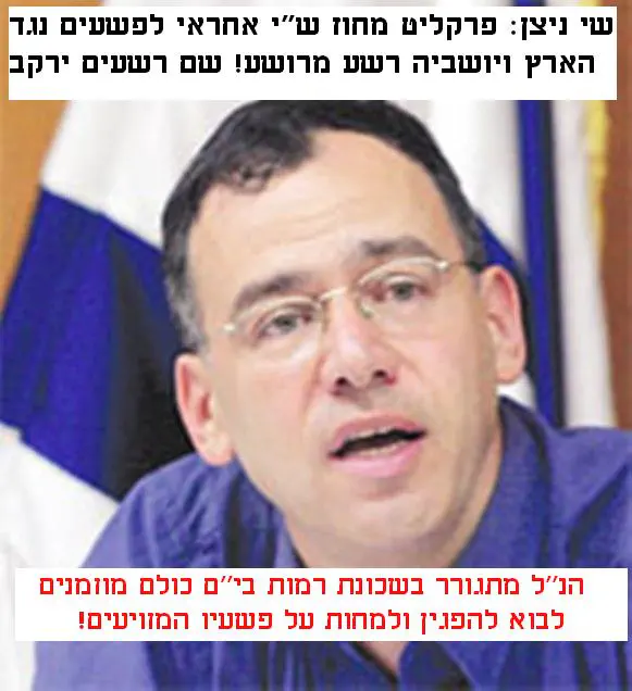 לא ייתכן שמתנחל יגרש יהודים וימשיך להנות מתמיכה של הסובבים אותו בישוב ובחברה.