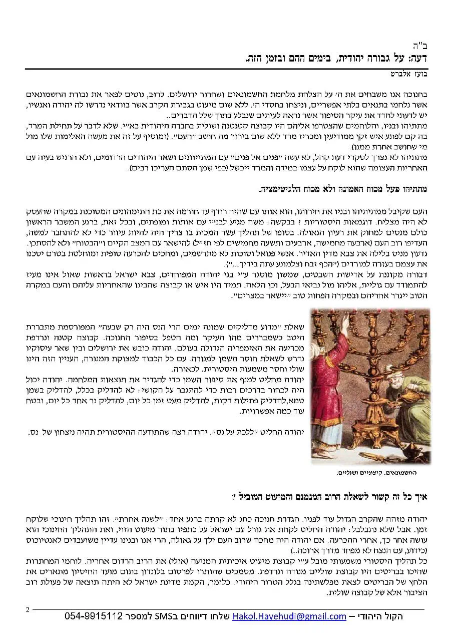 "כתוב שהגויים לא יקבלו את זה שליהודים יש שלטון שלהם, ועל זה יחרה אפם והם יבואו לכאן, וכאן יקבלו את המכה.