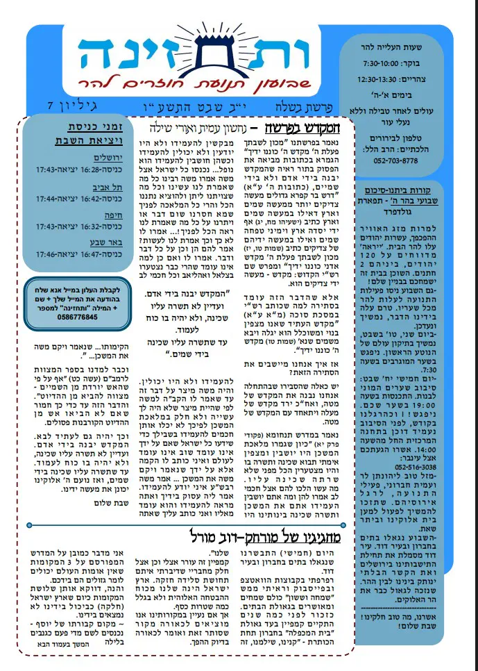 העלון השבועי "ותחזינה" מבית תנועת חוזרים להר.די"מ