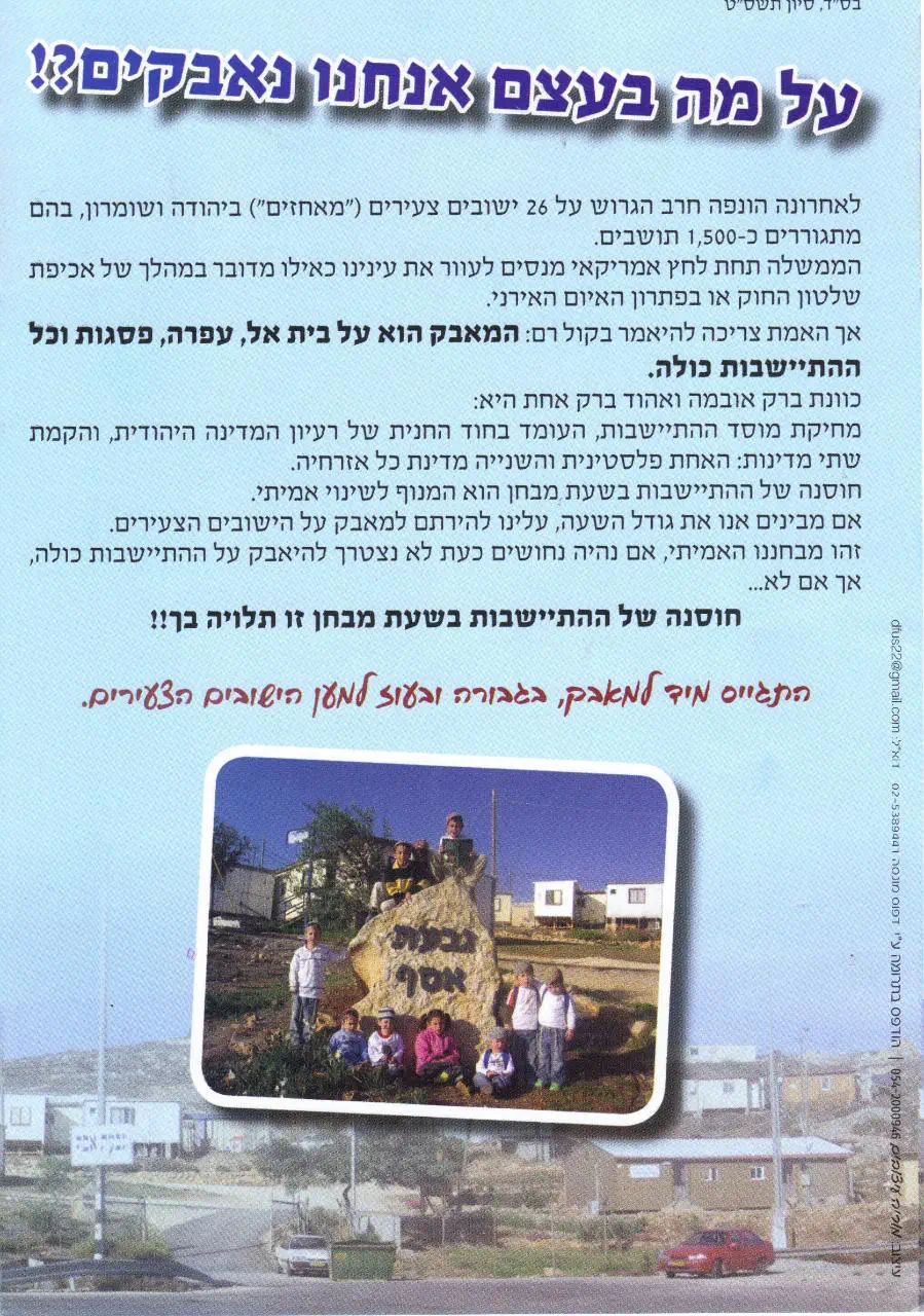 כלפי מתנחלים, שאינה עולה בקנה אחד