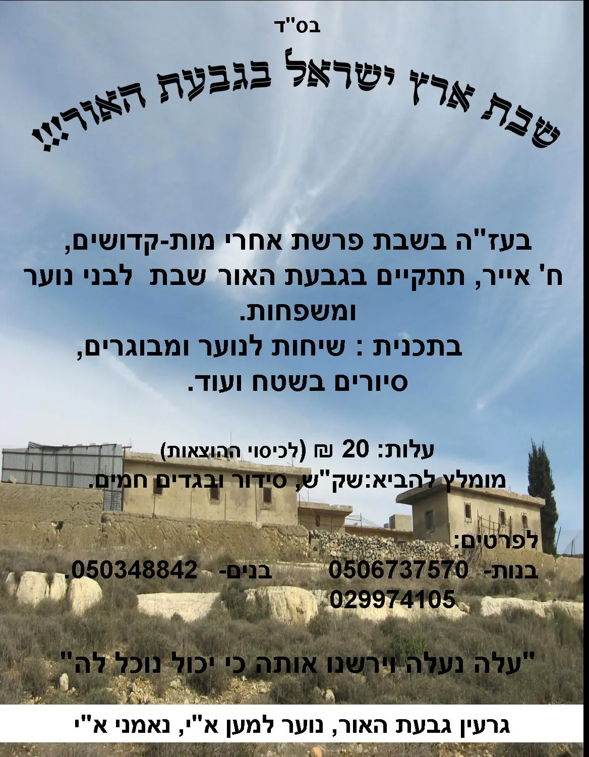 שיעור במעלה לבונה!!! היום!! היום!!!גל עיני