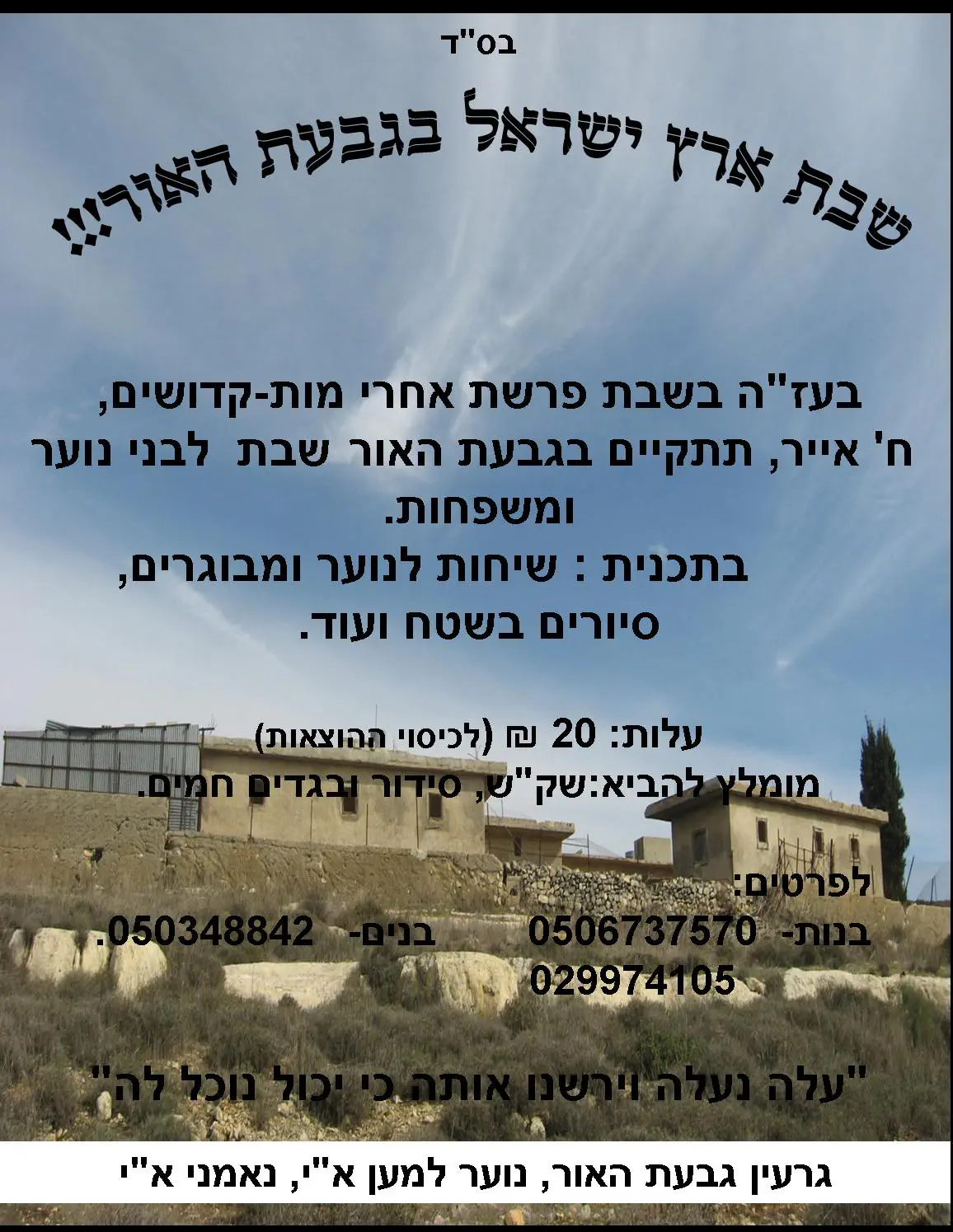 ופורסמו גם פלאיירים של השבת בגבעת האור..(אז אנשים- תבואו!)