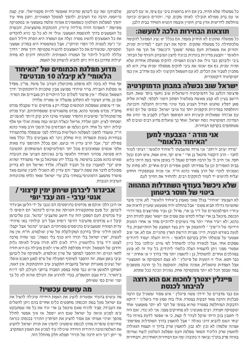 ועכשיו,כשה"ימין הקיצוני" נכנס לכנסת,ככה הוא אומר? תרימו ראש ותדברו דוגרי!לא רוצים טענות עוקפות.