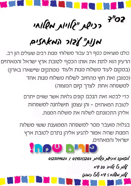 החודש "מרבים בשמחה" - ויש גם הזדמנות לסיוע בהסעות!!