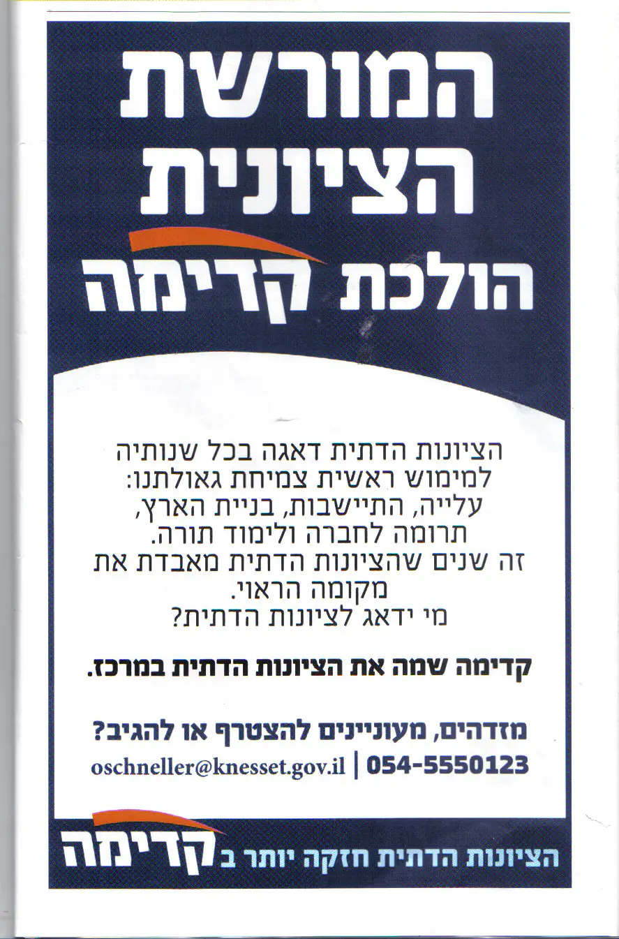 "קדימה שמה את את הציונות הדתית במרכז".