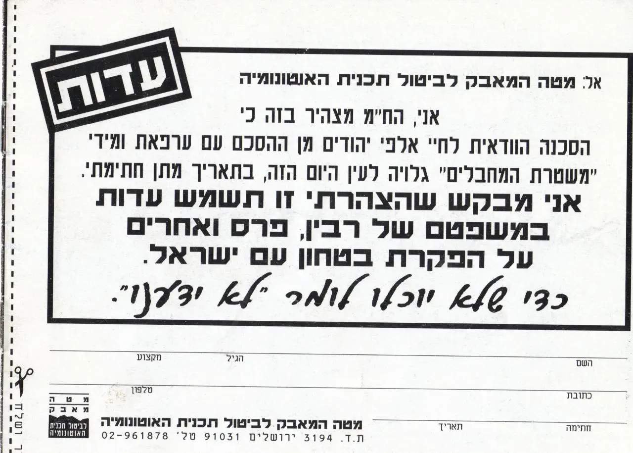 - זאהיר מוחסיין, מנהיג בארגון לשחרור פלשתין (אש"פ), אמר בראיון לעיתון הגרמני "טראו" במרץ 1977: "העם הפלשתיני אינו קיים; יצירתה של מדינה פלשתינית אינו אלא אמצעי להמשך מאבקנו נגד מדינת ישראל".