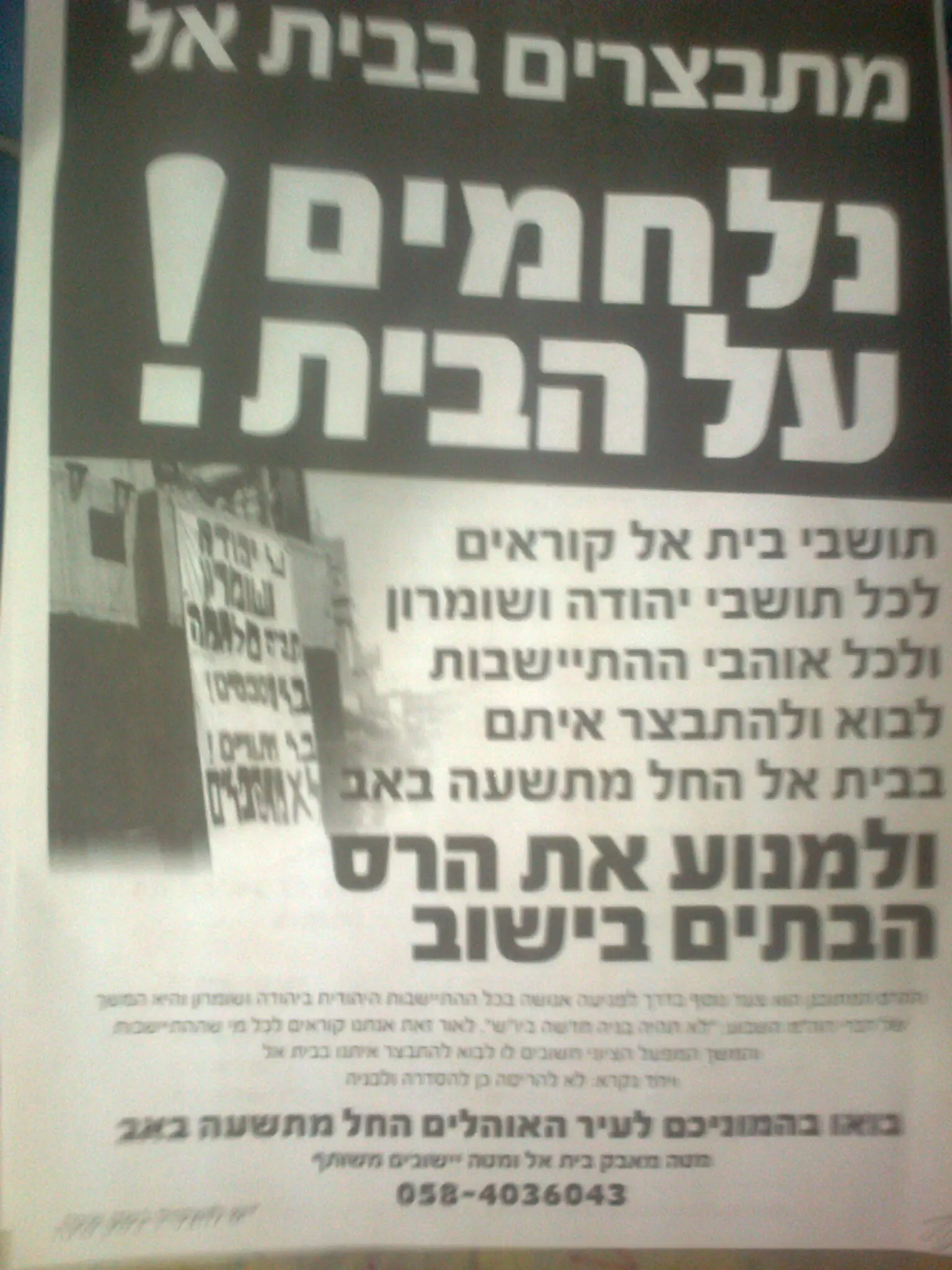 מה אני אמורה לעשות בתור בת במהלך המאבק (ח"ו) בבית אל? מה אומרים?