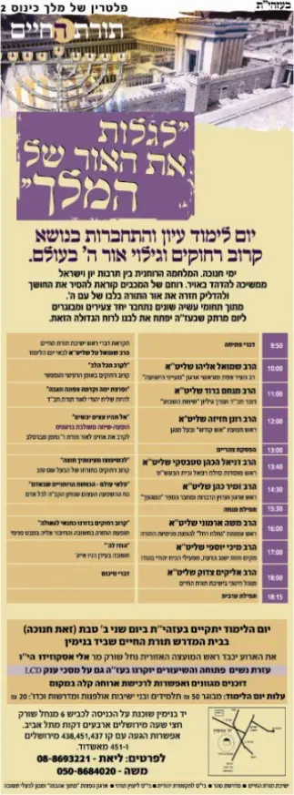 ביום א', א' טבת (נר שביעי דחנוכה) יתקיימו חגיגות שנה