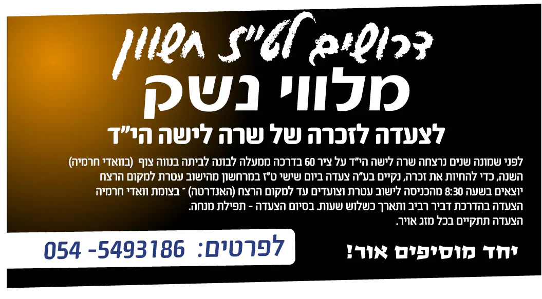 דרושים שומרים עם נשק ארוך לשבת בנות בחומש.א"ר יצהר