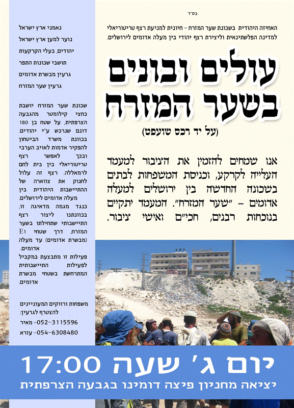 עלייה לקרקע ל"שער המזרח"- ביום שלישי הקרוב!מתנחלוס
