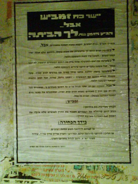 אם לא תצאו - תזכרו לדראון עולם כנותני יד לשפיכות דמים, נותני יד לגירוש יהודים, נותנים יד לחילול היהדות !