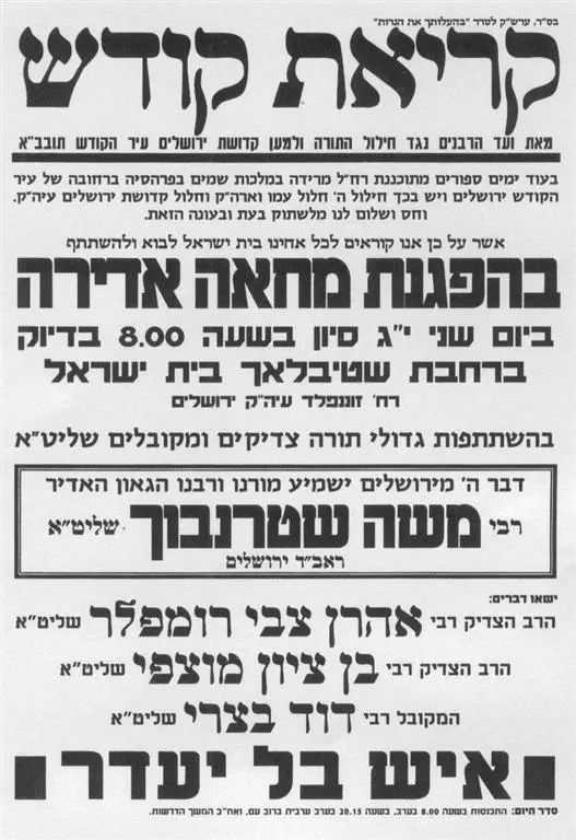 מחר ב-20:00, הפגנה נגד מצעד התועבה בירושליםואלאד