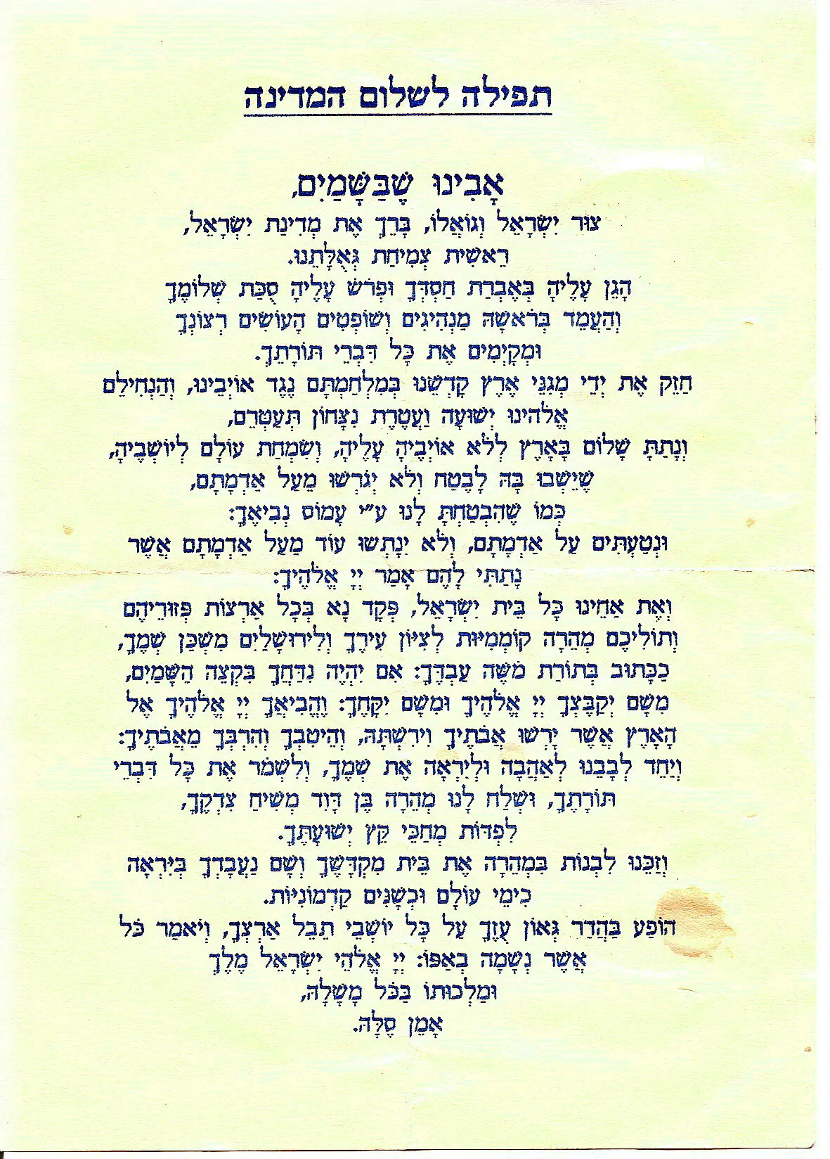 מישהו יכול לשלוח לי ב-gmail את התפילה לשלום המדינההכהניסט הנודד