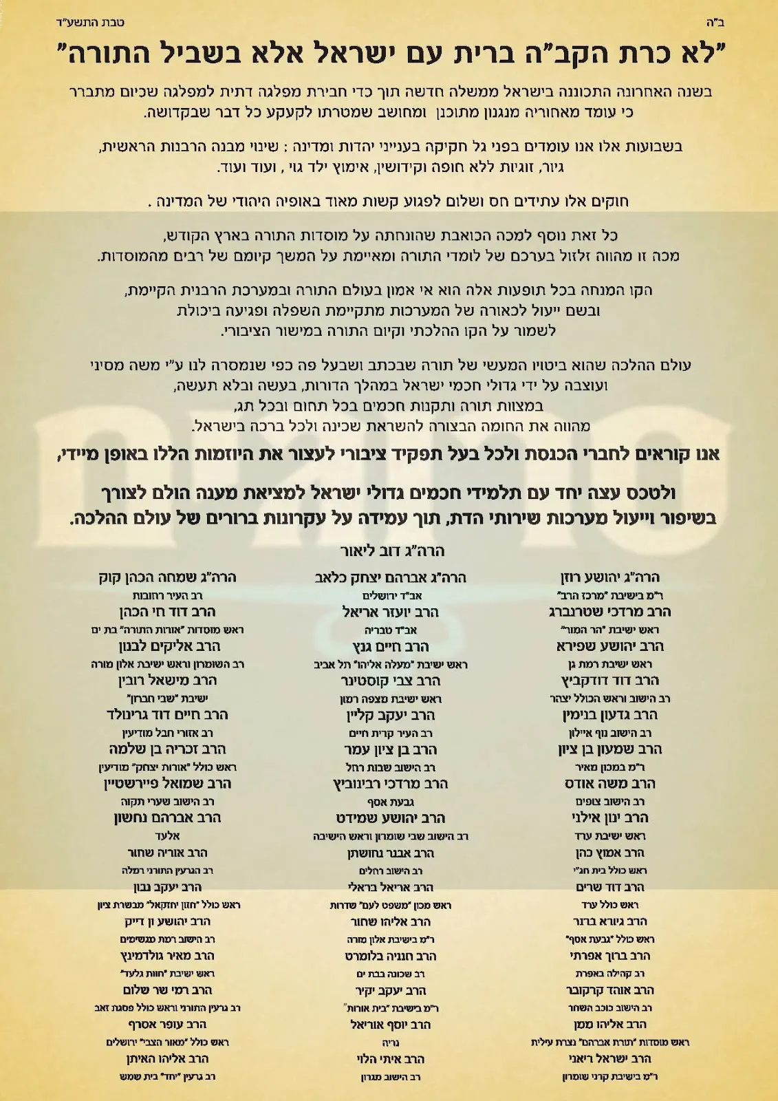 לא רק הישיבות של הציבור החרדי נדפקות ממנו, גם הישיבות של הציבור הדתי לאומי, במיוחד ישיבות שלא מוכנות ללכת בקו של בנט, ישיבות כאלה ימצאו את עצמן מהר מאוד חסרות אמצעים, והם אלה שעומדות היום לצד הישיבות ביצהר.