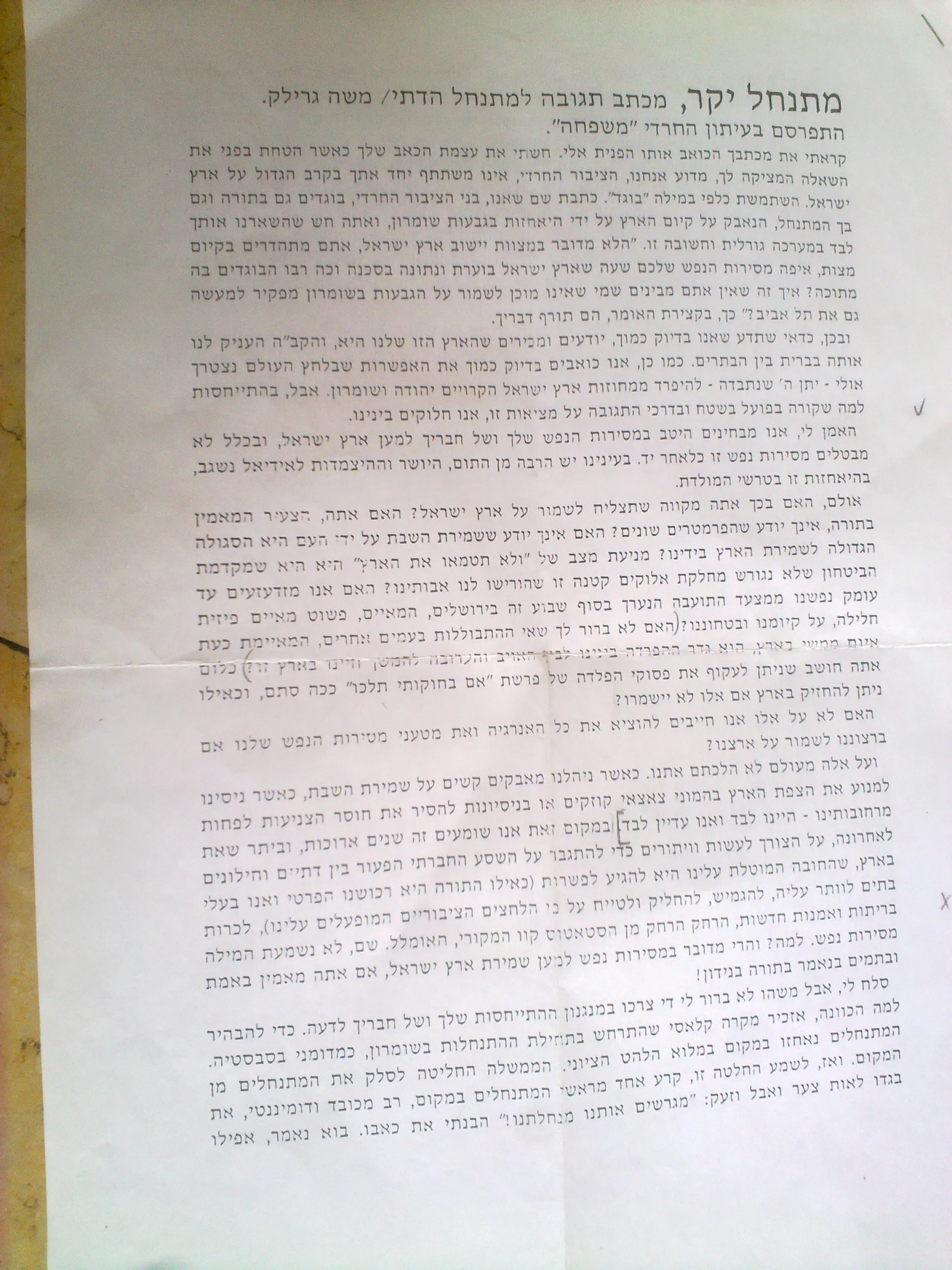 אין להם בעייה אם מי שמתקן בכפר קאסם נגיד.