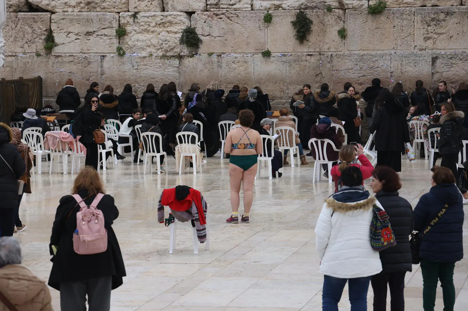 אישה מוחה בגופה עכשיו בכותל ( אישה, בגד-ים, כותל)מוקי_2020