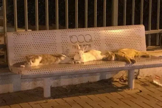 בינתיים בפתח תקווה ( חתול, ארנב, ספסל)מוקי_2020