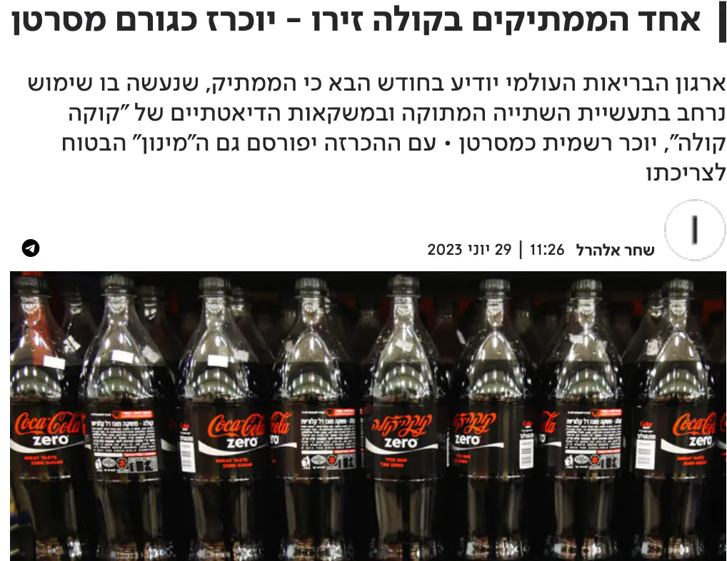 אחד הממתיקים בקולה זירו - יוכרז כגורם מסרטן(כאן11)מוקי_2020