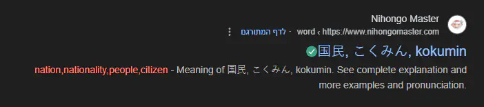 אני זוכר את המילה 国民 מסינית (רן מין) ויודעים התכלת