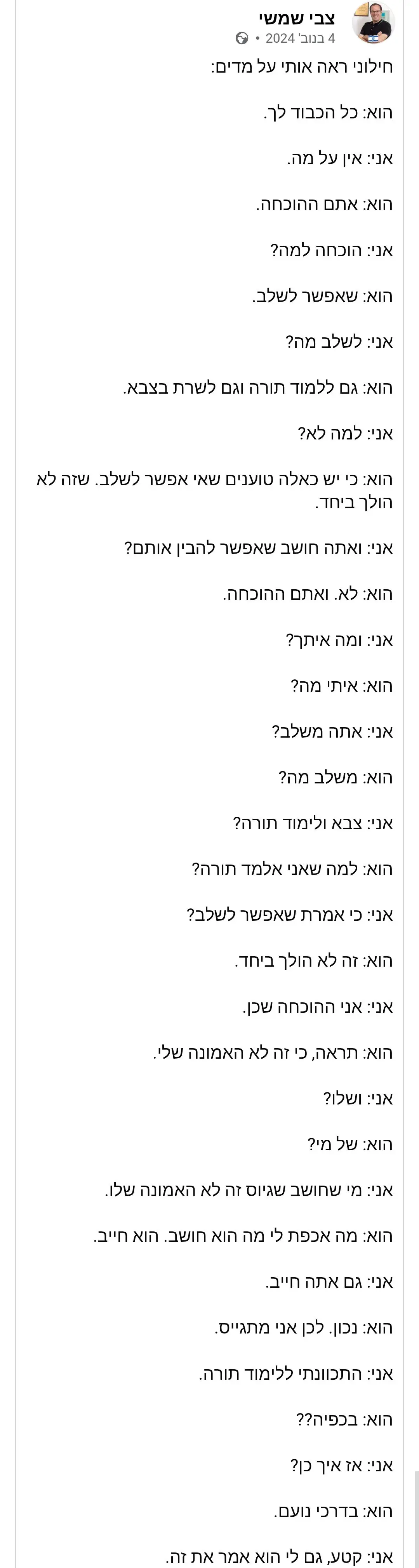 2.זה לא טענה שבאה מחרדי. זה מגיע ממישהו שהוא ניטרלי. הטענה העיקרית בעיני זה למה את החילוני מבינים ואת החרדי לא?