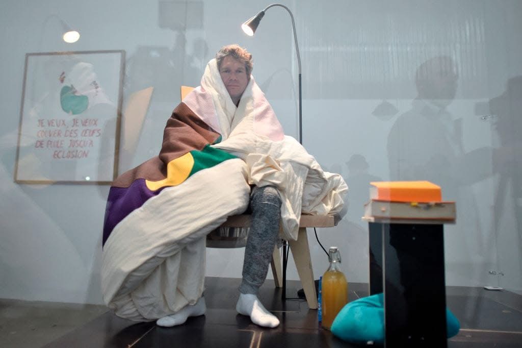 , פשוט הרב לזמןקעלעברימבארהאמן הצרפתי אברהם פונשאבל דגר על ביצי תרנגולת וגרם לביצים לבקוע תוך שימוש בחום גופו בלבד. במשך 23 ימים בשנת 2017, פונשאבל שרצה להפוך לתרנגולת אנושית ישב בתוך מתחם זכוכית בPalais de Tokyo בפריז, ושמר את הביצים חמות מתחת לכיסא שעוצב במיוחד בעודו עטוף בשמיכות מבודדות חום.