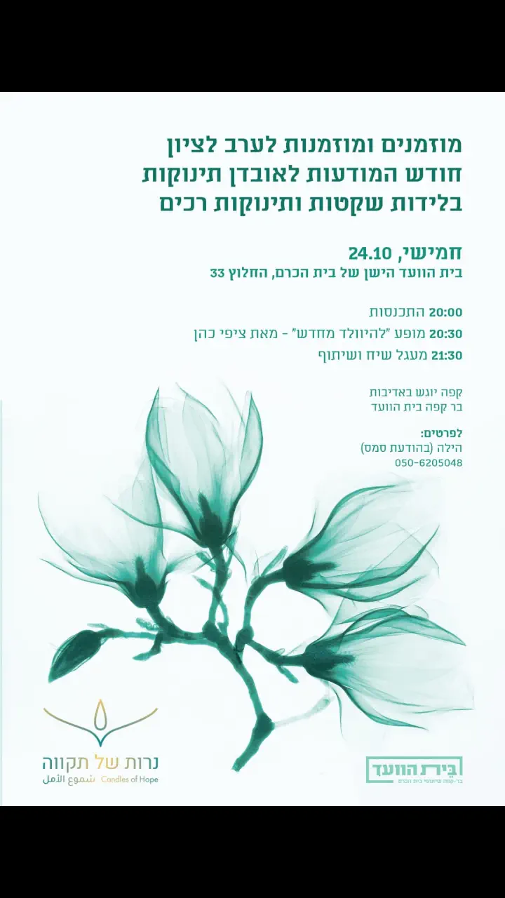 כן יש לי מס יפה של ילדים בבית.. שמשמחים אותי ונותנים בי כח.. אבל מאז האחרון עברתי 3 הפלות רציתי קצת לשתף. מה אני עוברת... אולי מישהי פה תזדהה איתי קצת. הפלה ראשונה היתה שוק טוטאלי. היריון שנכנסתי בצ'יקצ'אק ולא הייתי לחוצה בכלל.. כתמים שבאים והולכים דימומים ואז שומעים את הבשורת איוב. המממ אין דופק... ישר קמתי מחוזקת ואמרתי שקורה. לא נורא יש לי בבית ילדים. חיכיתי להפלה טבעית. וחטפתי הלם ממה שעברתי שם. וזה השאיר בי טראומה. ושוב קמתי כאילו כלום. כי החיים ממשיכים ואני טיפוס של חיים... ממשיכים.. אבל זה רדף אותי כנראה בתת מודע והתחלתי להיות מפוחדת ועם כל מיני בעיות שאין לי כח לפרט ועד שגילו מה יש לי.. ושוב נלחמתי והתאוששתי ושוב התבשרתי שאני בהיריון הוא התחיל נורא. שבןע אחרי שכבר גיליתי התחלתי לדמם החרדות אחזו פי. זה היה זוועה ויש דופק והכל טוב והדימום מתישהו הפסיק. ואז הוא שוב חזר אחרי שבועיים. ואני בטוחה שהכל בסדר. ושוב אני באה וכבר מכינה את הא.סאונדית שעברתי הפלה. היא רק שמה את המטמר. ואיכשהו אני מבינה אבל לא רוצה להאמין. והיא אומרת בכאב זה נראה אותו סיפור.. ואני בוכה ומתפרצת והיא מביאה לי מים. ומנסה להרגיע אותי. זה לא קורה לי אני צורחת זה לא יכול להיות ששוב אני הולכת לעבור את מסע הסבל הזה של ההפלה הדימומים הכאבים ההיטהרות. אין לי כח... אני הולכת.. היא רוצה שאשאר. שאדבר עם מישהו שלא אלך ככה. אני יוצאת אישה שמחכה אחרי רואה אותי בוכה ובטח גם שמעה.. מעניין מה עובר לה בראשה.. בא לי לצעוק לה את יודעת ששוב אין לעובר שלי דופק. כל העולם אתם קולטים ששוב אני תקועה עם עובר מת בבטן. אתם קולטים בכלל? אני בוכה לקדוש ברוך הוא בלי דמעות ובעלי לא עונה לי.. ואני לבד באוטו ואיןן לי דמעות. רק עצבים. על כל העולם. ובעלי סוףסוף חוזר אלי ואני אומרת לו תנחש מה... והוא אומר.. "נו די.. את סתם.." ואני צורחת לא אני לא סתם. אני לא. אתה קולט?? אמא שלך ואמא שלי והמשפחה הדפוקה שלך וכל העולם שעשה לי עין הרע.. ואני מתפרצת.. (ושתדעו שאני הכי אוהבת אותם בעולם) התחושה היתה של אשמה. שנאתי את כולם. שנאתי שלכולם במשפחה הולך לפי הספר. והם מתבכיינים על שטויות.. ואני מתמודדת עם הפלות.. והם לא מבינים כלום. אז כעסתי עליהם. וכל מיני מטענים מהעבר התפרצו. והתנתקתי מכולם ואמרתי לבעלי שיקפוץ העולם שכולם יקפצו לי. כל הערסיות שלי יצאה אז.. כל הקריזות שלי התבטאו יופי... נתתי מקום להכל... וההפלה היתה עם כדורים וזה היה גיהנום ויסורי תופת לעומת הפעם הראשונה ועד שהטהרתי ועד שהחלמתי בנפש וחזרתי להיות בקשר עם כולם לקח 6 שבועות. בול. על היום. ואז שוב אחרי 3 חודשים נפקדת... והפעם באדישות גמורה(כמו אבלה הקשבתי לרופאים שאמרו אל תקחי כלום הבדיקה קרישיות תקינה.. אל.תעשי כלום זה סטטיסטי מה שקרה לך..) אבל עמוק בלב אני יודעת שזה לא יגמר טוב. אולי כי התרגלתי. אולי כי באמת הרגשתי. והפעם עד שבוע 7 אין דימומים וכתמים.. וזה נדיר.. ואז יש.. ואני קצת בוכה נירגעת הולכת לא.ס והיא ממש מנסה למצוא דופק אבל אין . ויש לי צביטונת בלבד בלבי... "ובעלי ישר בואי תשתי תאכלי משהו שישמח אותך. עזבי לא יעזור לך לחשוב על זה..". צודק. גבר טיפוסי.. ואנחנו מתחילים עם צחוקים וציניות.. ואני חוזרת לשגרה כאילו כלום. מחכה עם המיון ושם אומרים סופית אין דופק.. פסדר זה היה ברור... קובעים לי תור לגרידה (מסיבה מסויימת שלא אפרט) אבל הפלא ופלא רביעי בבוקר קמה והשק מול עיני בקושי יצא עם גושים או משהו בערב קצת כואב לי נוסעחם למיון שם מודיעים שכמעט הכל יצא.. ואני בקושי הרגשתי משהו.. ממש רחמים. בבוקר קמה עם חום מטורף וטסה למיון עם חשש לזיהום אבל אחרי בדיקות מסתבר שחטפתי איזה וירוס. זהו. הפעם השלישית נגמרת לה בסבבה פיזית 3 שבועות התאוששות כי הוירוס גמר אותי.. והחליש. אבל המון חום מצד בעלי והמשפחה. לא שונאת הפעם אף אחד. לא כועסת. בנפש חוזרת תיק תק לעצמי.. והיום שאני נזכרת בהפלות הכי חרוטה לי משום מה השניה וקצת הראשונה אבל השלישית נמחקה אפליו לא זוכרת מה היה התא