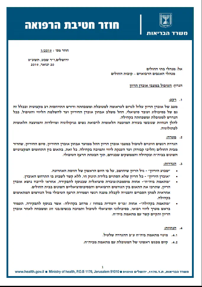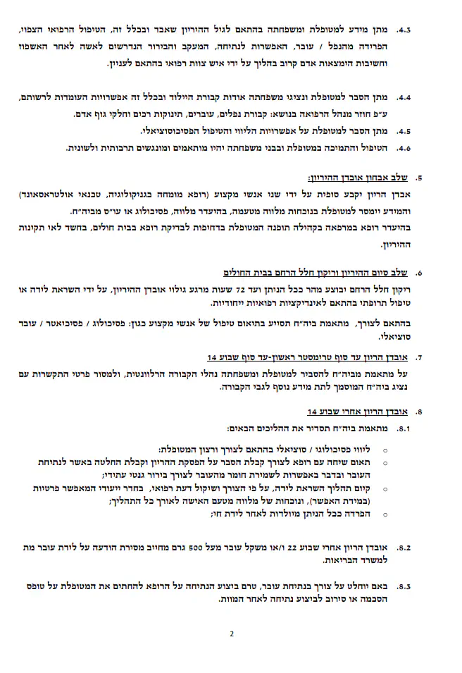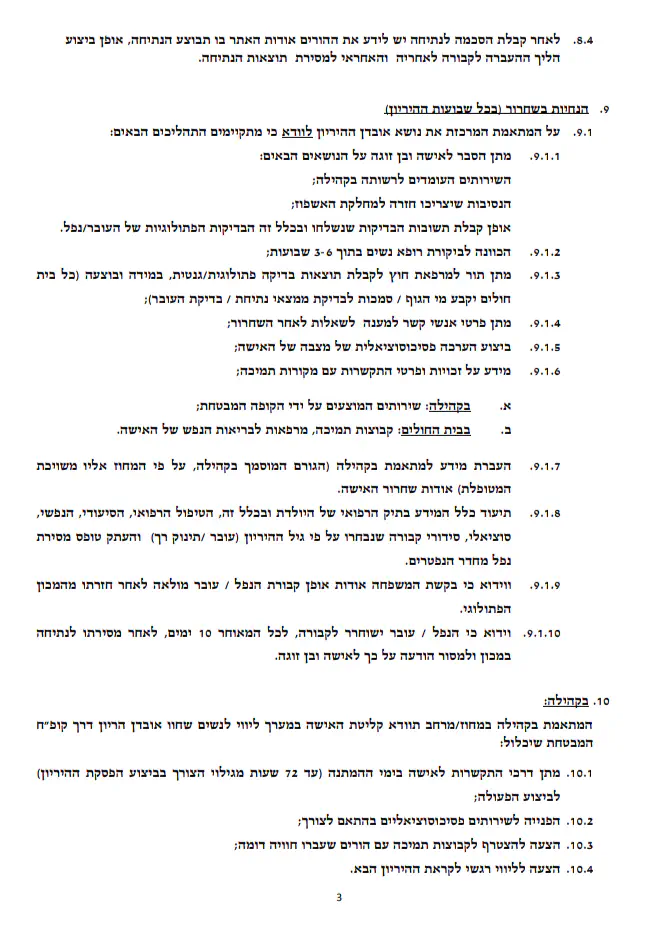 והייתי מציעה להוסיף לעניין הריקון רחם, שזה יוסבר לצוות המטפל קודם מה עוברת המטופלת שלהם, ולא שהם יגלו זאת בחדר ניתוח ע"י שאלות חסרות טאקט, ושהחדר יהיה עם דלת סגורה, או לפחות שירדימו את המטופלת לפני שמתחילים את ההליך (שכולל לחשוף אותה ולשים את הרגליים במתלים משני הצדדים..)