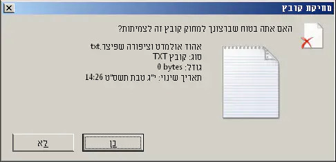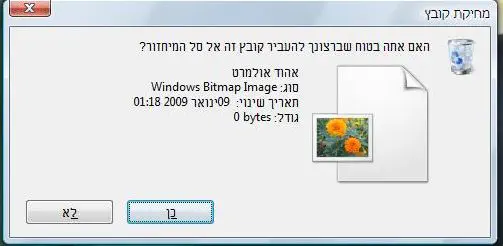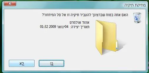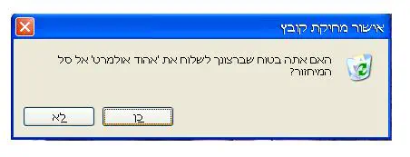 5. המחשב ישאל "האם אתה בטוח שאתה מעוניין לשלוח את אהוד אולמרט לסל אשפה?"