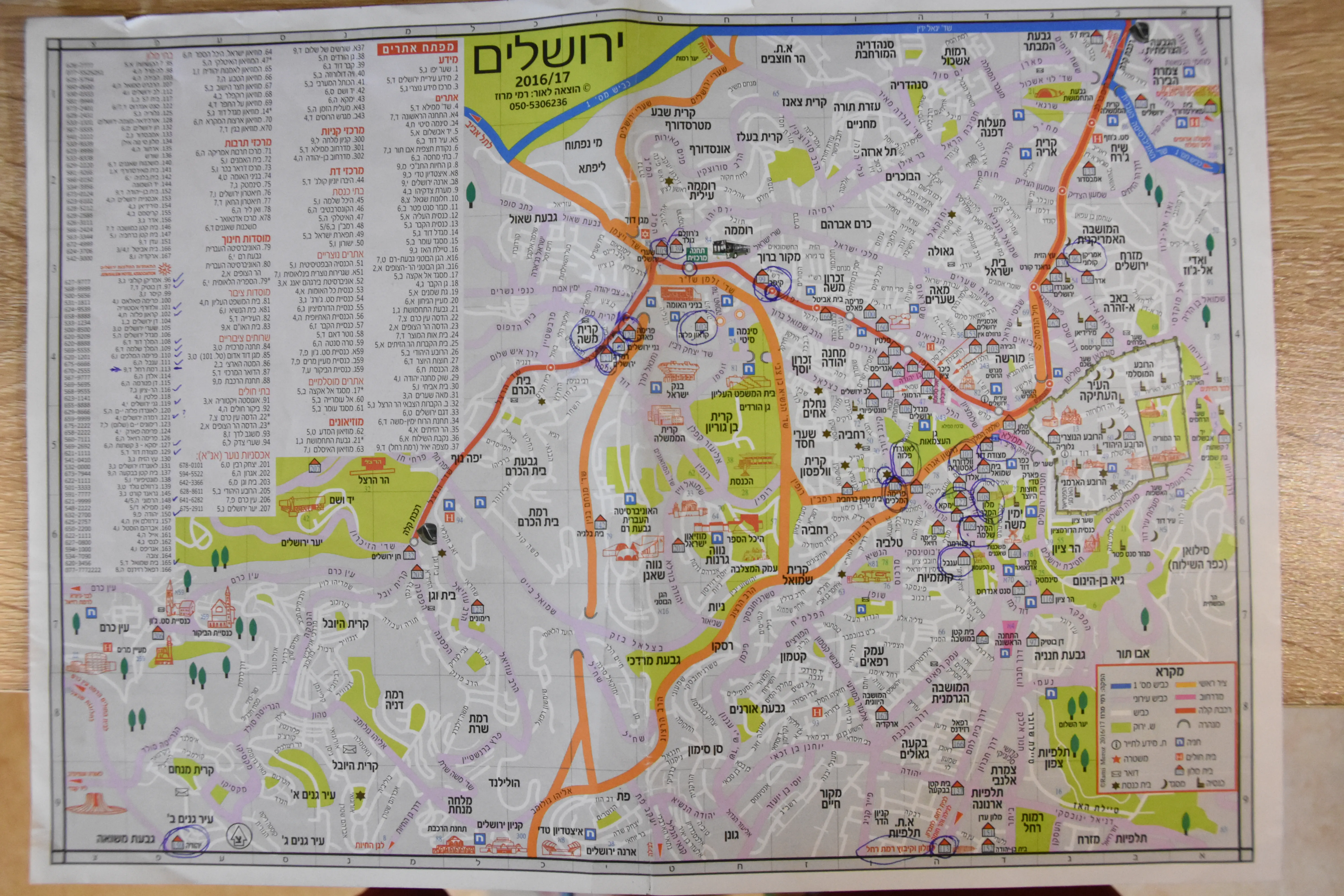 זו מפה של ירושלים עם סימונים של מלונות עם פסנתריבחוש חרצוליים