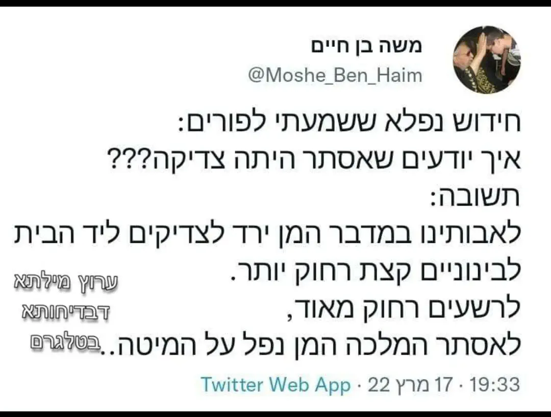 והוא טוען שזה כי אנחנו אסורים. וזה פשוט לא נכון. זה הרבה יותר שורשי ועצוק מזה והוא מסרב להבין.