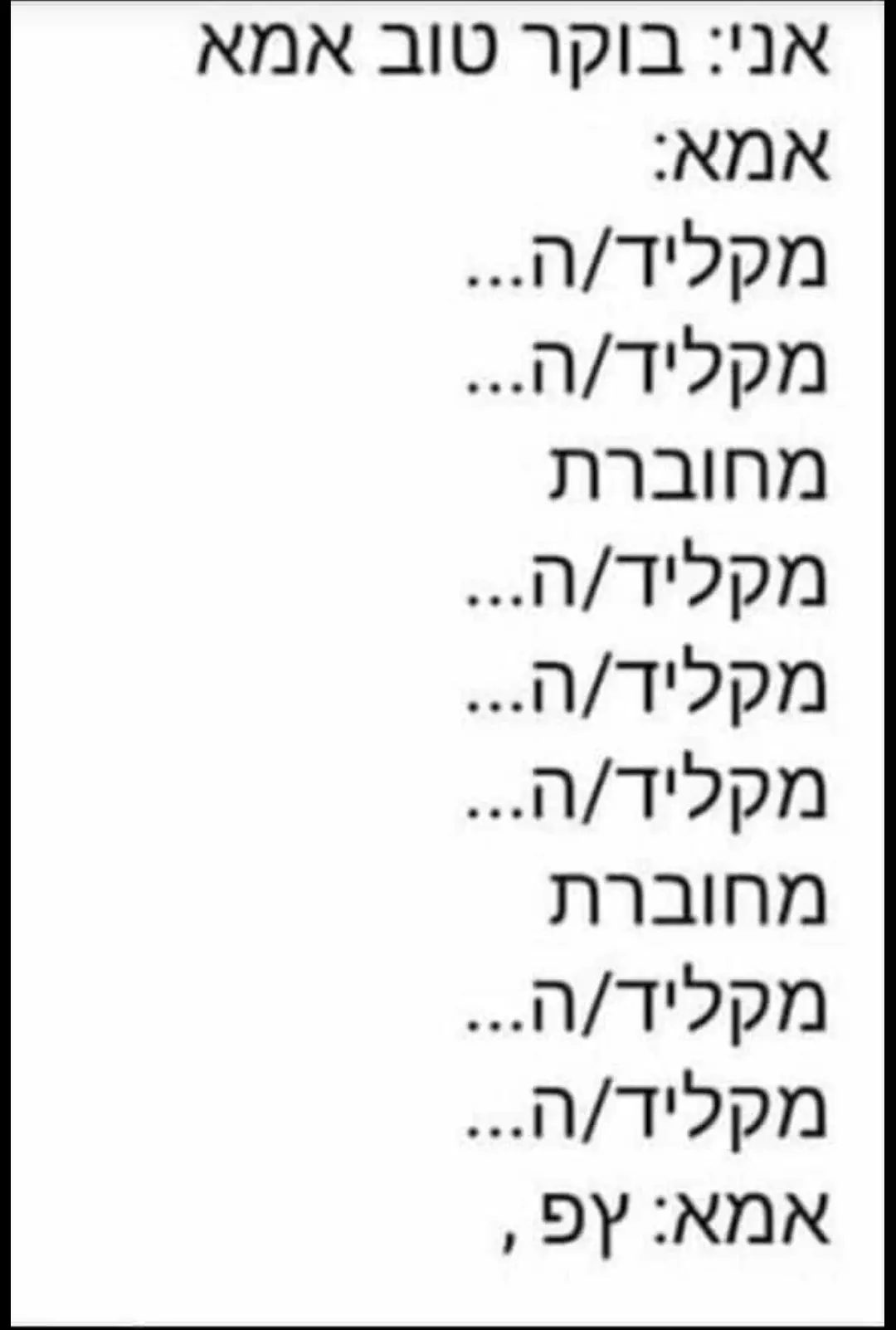 אתמול הוא בא אליי שוב ביציאה של "אבא שלי דיבר איתי על קניית בית" סבבה זה ממש לא חדש. פעם בכמה חודשים הנושא הזה צף. ואני ממש חושבת שזו טעות בשבילנו להכנס לזה עכשיו והוא כולו אטום ולא מבין - כבר שנה את דוחה את זה. סבבה! אש כנראה שנה אני מרגישה שאנחנו לא במקום של להעמיס עלינו יותר ממה שכבר עמוס! יותר חשוב לו הלימודים והעבודה והבית מאשר הזוגיות??? הוא לא רואה איך היא מתפרקת לנו מבין האצבעות??? אשכרה סופש שלם היינו רחוקים ופתאום היום הוא בא ומדבר איתי כאילו לא קרה כלום. br />