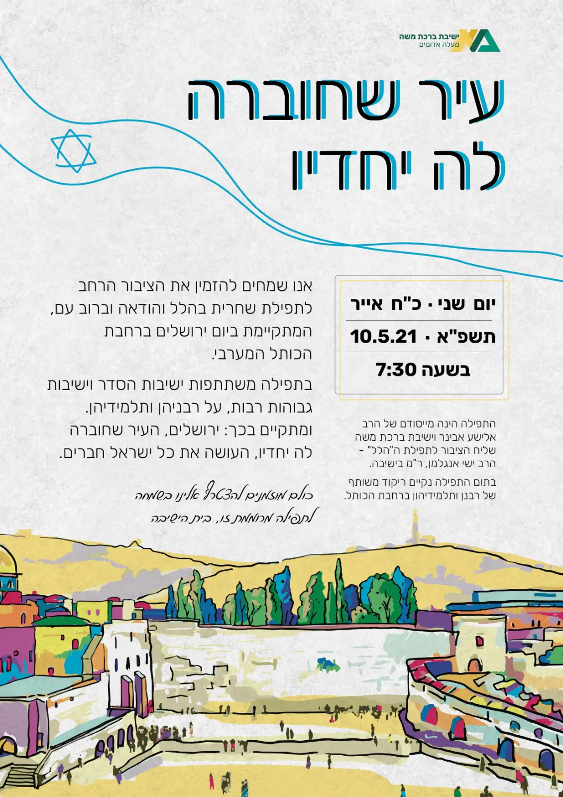 שלומצ'מרכז תפילה הערב ומחר נראלי יש את זהה עם החברי כנסת