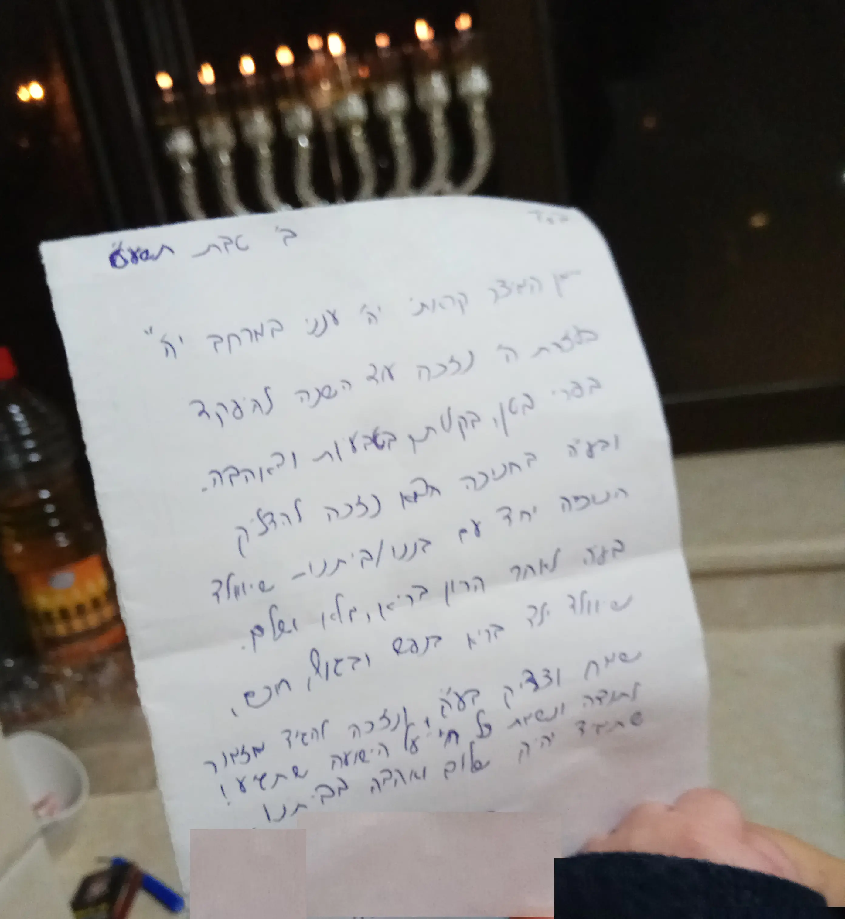 בדיוק עכשיו כתבתי ככה ושמתי פתק בחנוכיה