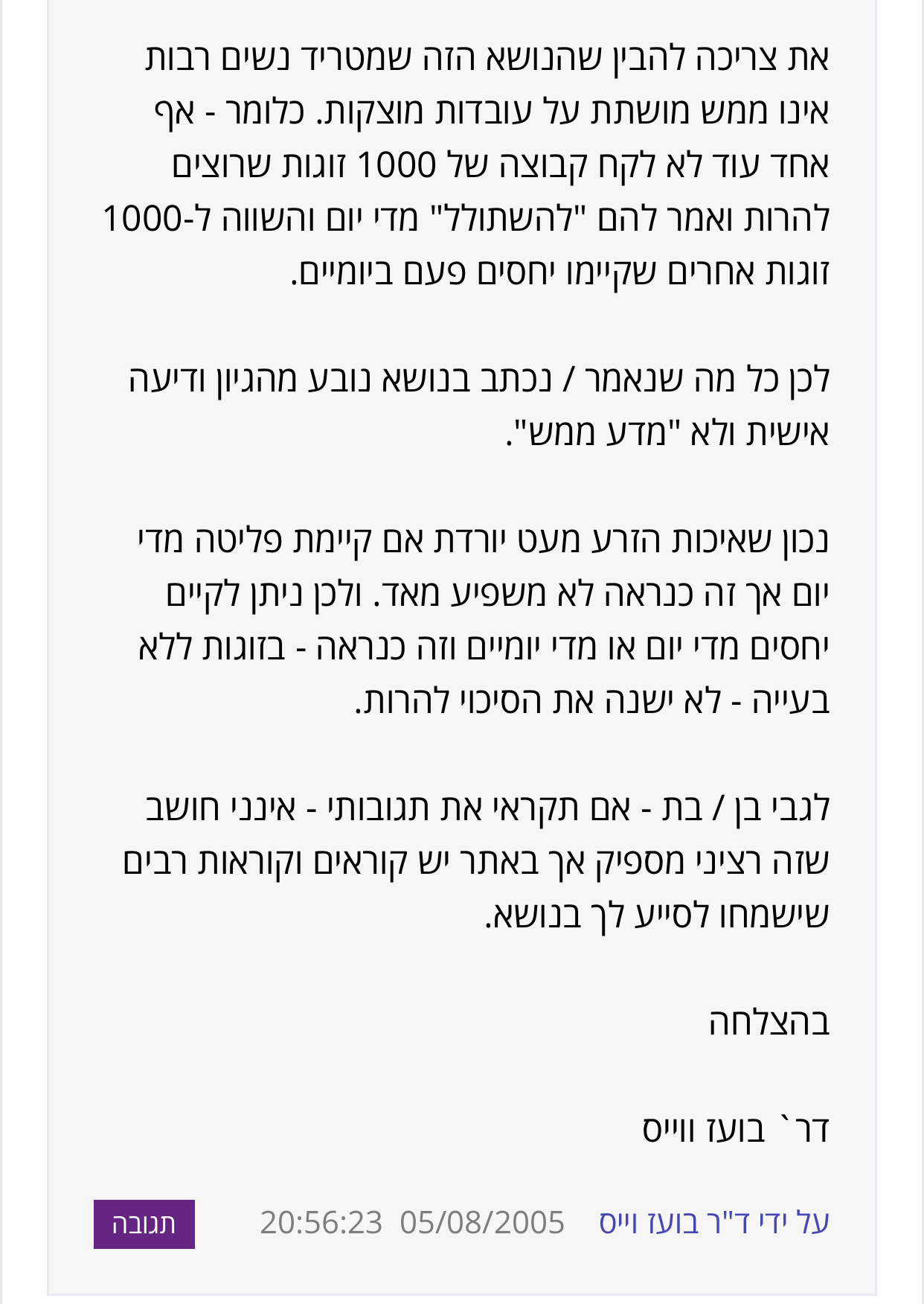 יום כן יום לא, או "כמה שיותר"?-סטטיסטיקה - הריון ולידה - פורטל יולדת