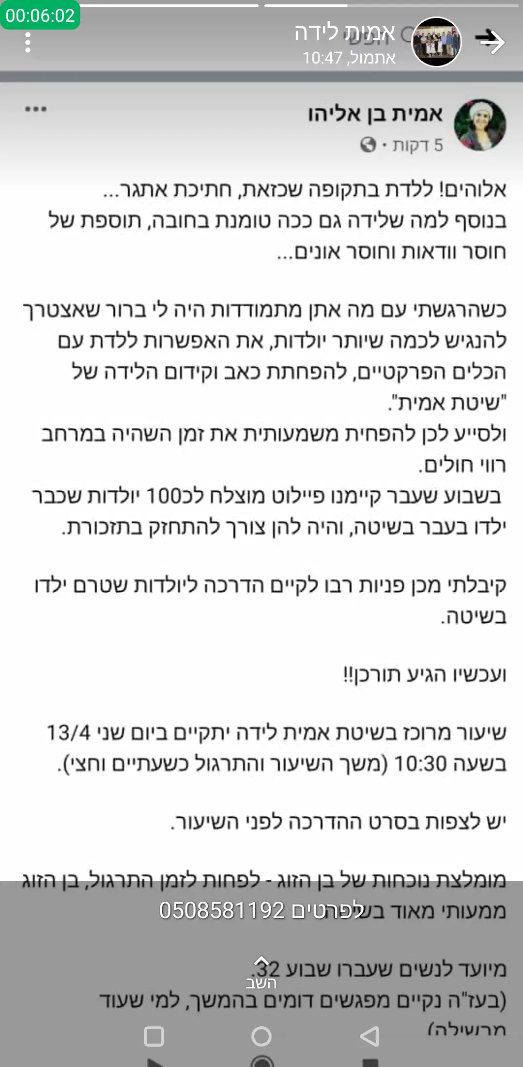 שבמקרה חרום תוכלי לקרוא למישהו קרוב.