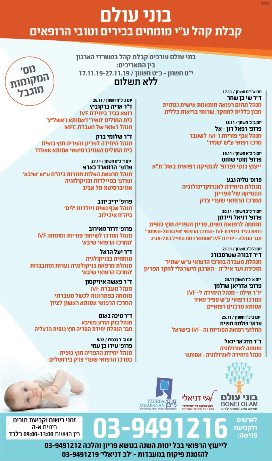 במסגרת הפרויקט ישנה קבלת קהל במשרדי ארגון בוני עולם על ידי רופאים מומחים *ללא תשלום.*