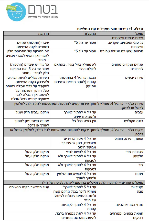 לרגל תחילת הלימודים אני מרגישה צורך להעלות את מודעות ההורים למאכלים שאינם מומלצים למאכל עד גיל מסויים מחשש לחנק וכך מאכלים שיש לחצות אותם (זיתים, ענבים וכד')